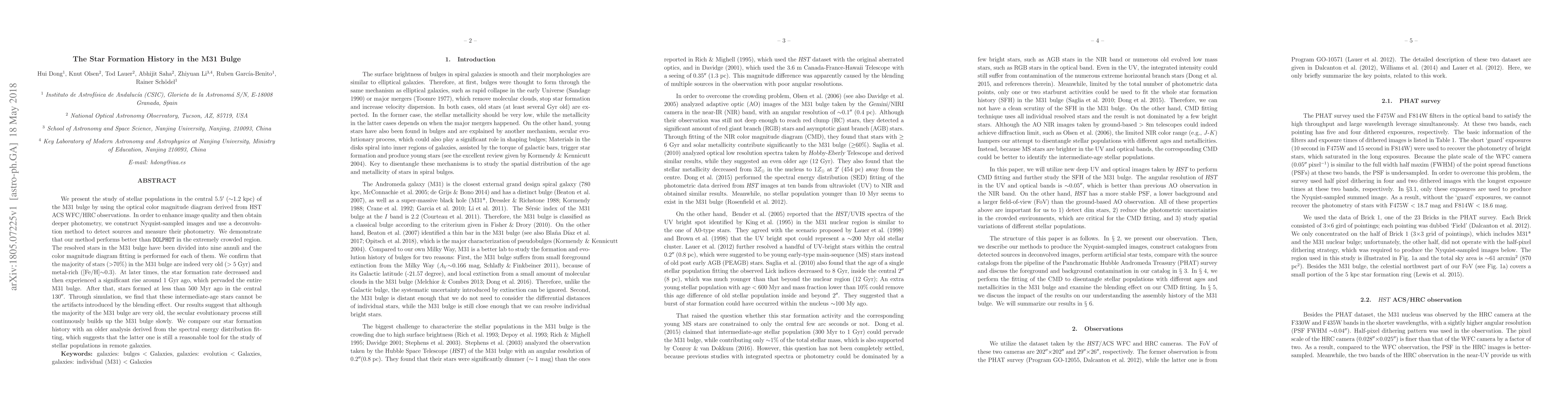 Understanding the star formation history of the M31 bulge contributes to our knowledge of galaxy evolution, particularly bulge formation and secular evolution.