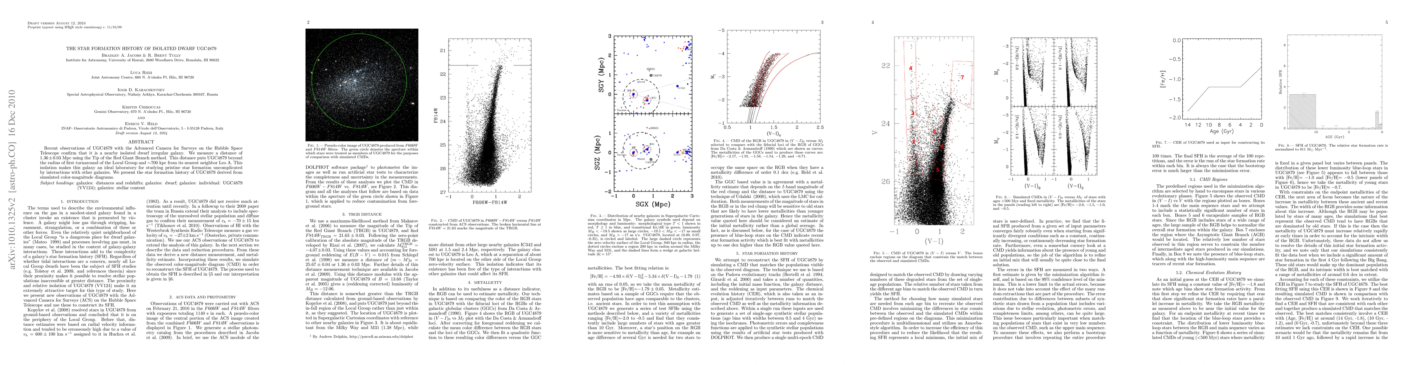This study uses Hubble Space Telescope observations to determine the star formation history of the isolated dwarf irregular galaxy UGC4879, finding it to be beyond the Local Group's first turnaround radius and presenting a pristine environment for star formation studies. Simulated color-magnitude diagrams reveal the galaxy's detailed star formation history.