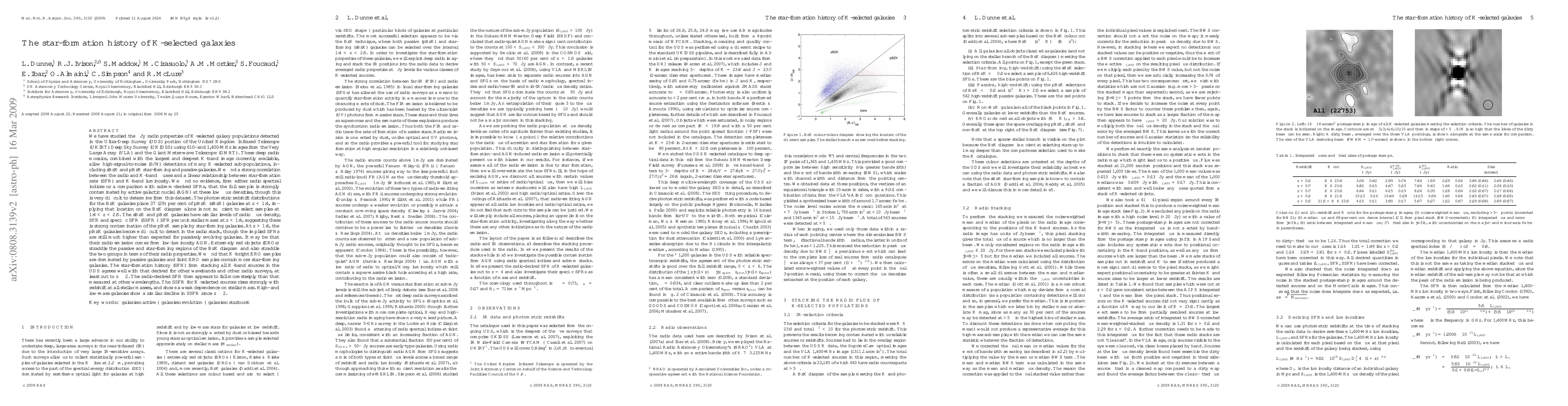 This study investigates the star-formation history of K-selected galaxies using radio observations from the VLA and GMRT, revealing a strong correlation between radio flux and K luminosity. The research finds no significant AGN contamination and suggests that pBzK galaxies may be contaminated by star-forming galaxies at lower redshifts, while their radio emission may indicate low-luminosity AGN at higher redshifts.