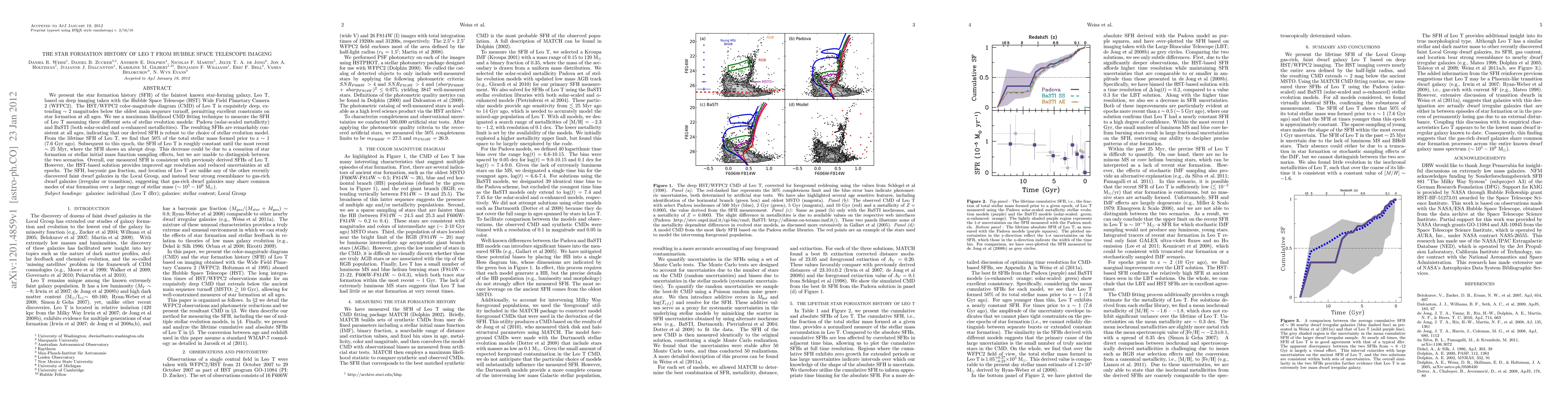 This study uses Hubble Space Telescope imaging to derive the star formation history of Leo T, revealing that 50% of its stellar mass formed over 7.6 Gyr ago, with a roughly constant star formation rate until a recent 25 Myr drop. The findings suggest gas-rich dwarf galaxies may share common star formation modes.
