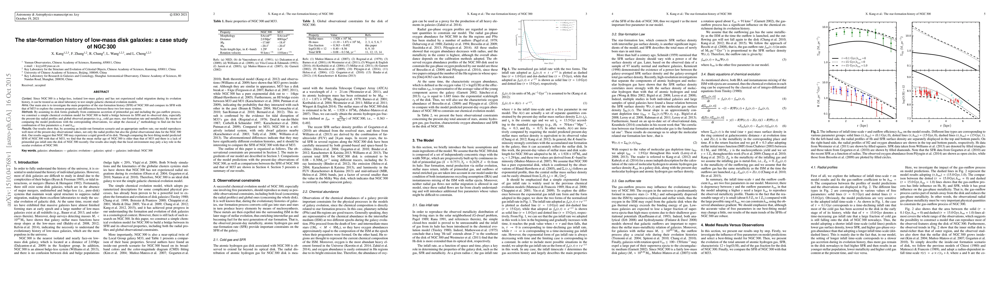 Since NGC300 is a bulge-less, isolated low-mass galaxy and has not experienced radial migration during its evolution history, it can be treated as an ideal laboratory to test simple galactic chemical evolution models. By assuming its disk forms gradually from continuous accretion of primordial gas and including the gas-outflow process, we construct a simple chemical evolution model for NGC300 to build a bridge between its SFH and its observed data, especially the present-day radial profiles and global observed properties (e.g., cold gas mass, star-formation rate and metallicity). By means of comparing the model predictions with the corresponding observations, we adopt the classical $\chi^{2}$ methodology to find out the best combination of free parameters $a$, $b$ and $b_{\rm out}$. Our results show that, by assuming an inside-out formation scenario and an appropriate outflow rate, our model reproduces well most of the present-day observational values, not only the radial profiles but also the global observational data for the NGC300 disk. Our results suggest that NGC300 may experience a rapid growth of its disk. Through comparing the best-fitting model predicted SFH of NGC300 with that of M33, we find that the mean stellar age of NGC300 is older than that of M33 and there is a lack of primordial gas infall onto the disk of NGC300 recently. Our results also imply that the local environment may paly a key role in the secular evolution of NGC300.