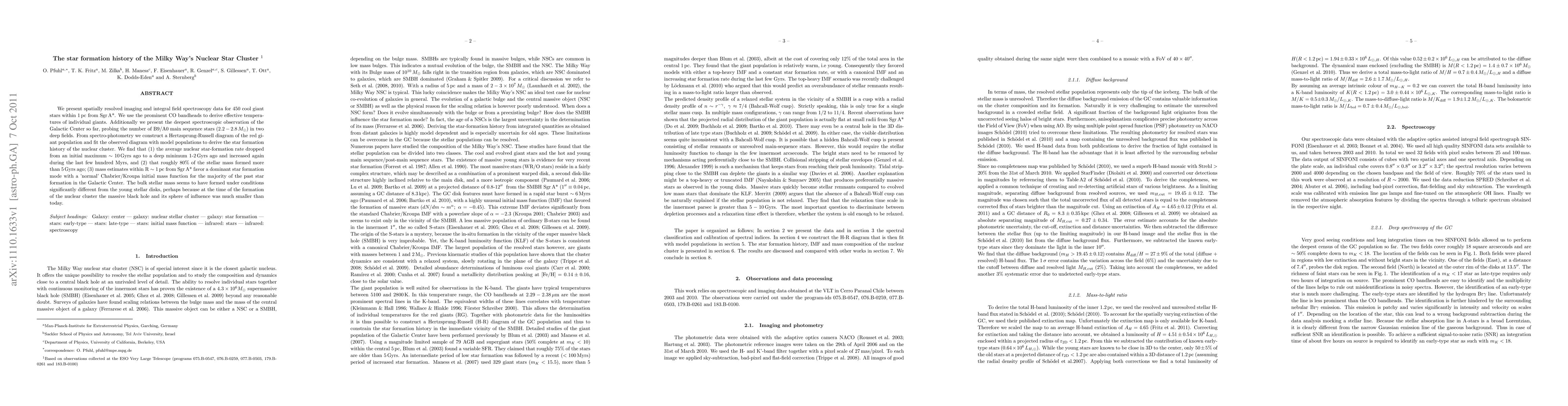 This study uses imaging and spectroscopy to analyze the star formation history of the Milky Way's Nuclear Star Cluster, revealing a star formation rate peak around 10 Gyrs ago, a low point 1-2 Gyrs ago, and a recent increase. Approximately 80% of the stellar mass formed over 5 Gyrs ago, indicating a 'normal' initial mass function for most past star formation.