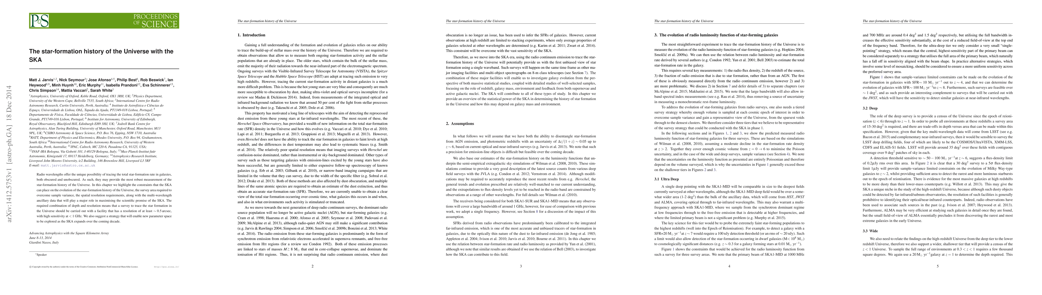 This paper discusses how the Square Kilometre Array (SKA) can provide robust measurements of the star-formation history of the Universe through radio wavelengths, emphasizing the need for high resolution and sensitivity to overcome sample variance and explore new parameter space. The SKA's capabilities will enable comprehensive surveys to trace star formation across cosmic history.