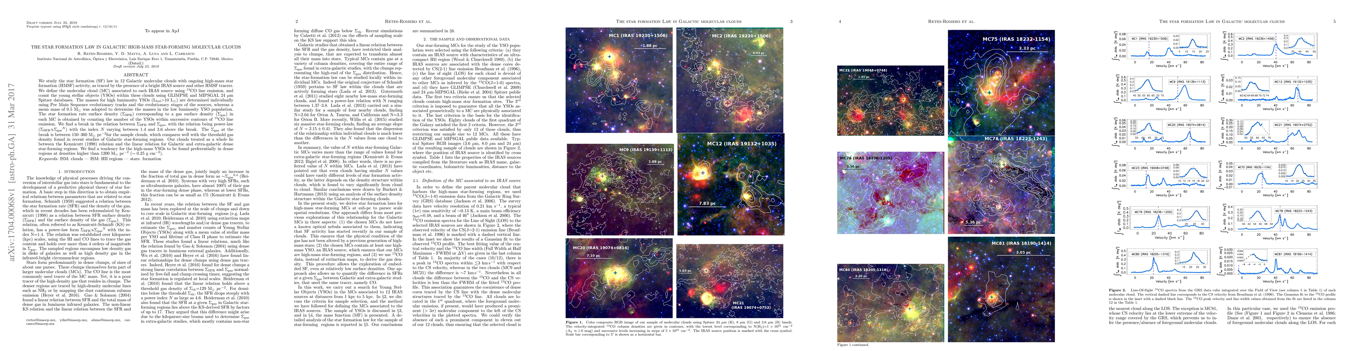 This paper investigates the star formation law in 12 Galactic high-mass star-forming molecular clouds, finding a break in the star formation rate surface density versus gas surface density relationship, with the index varying between 1.4 and 3.6 above the break. The study reveals a preference for high-mass young stellar objects to form in denser regions above 1200 Msun/pc^2.