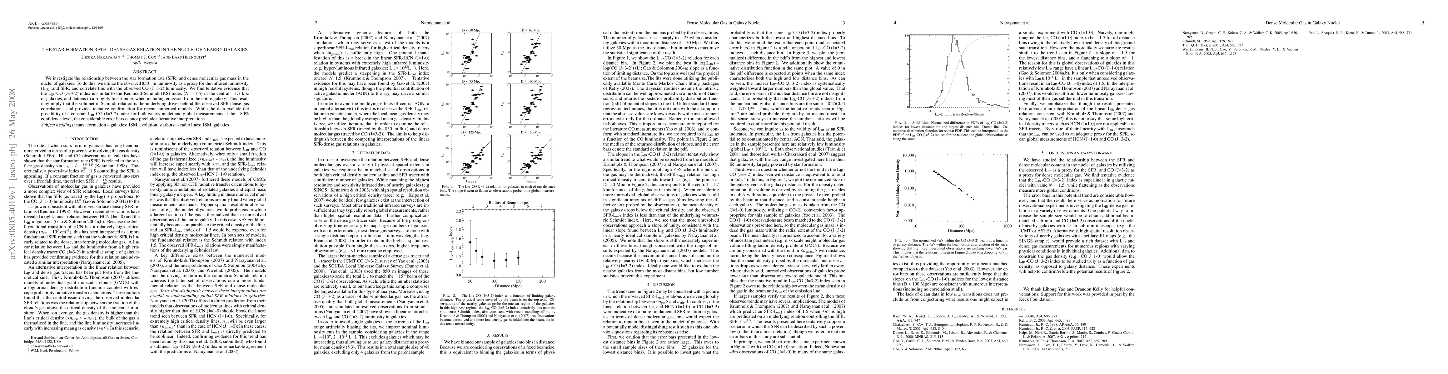 We investigate the relationship between the star formation rate (SFR) and dense molecular gas mass in the nuclei of galaxies. To do this, we utilize the observed 850 micron luminosity as a proxy for the infrared luminosity and SFR, and correlate this with the observed CO (J=3-2) luminosity. We find tentative evidence that the LIR-CO (J=3-2) index is similar to the Kennicutt-Schmidt (KS) index (N ~ 1.5) in the central ~1.7 kpc of galaxies, and flattens to a roughly linear index when including emission from the entire galaxy. This result may imply that the volumetric Schmidt relation is the underlying driver behind the observed SFR-dense gas correlations, and provides tentative confirmation for recent numerical models. While the data exclude the possibility of a constant LIR-CO (J=3-2) index for both galaxy nuclei and global measurements at the ~80% confidence level, the considerable error bars cannot preclude alternative interpretations.