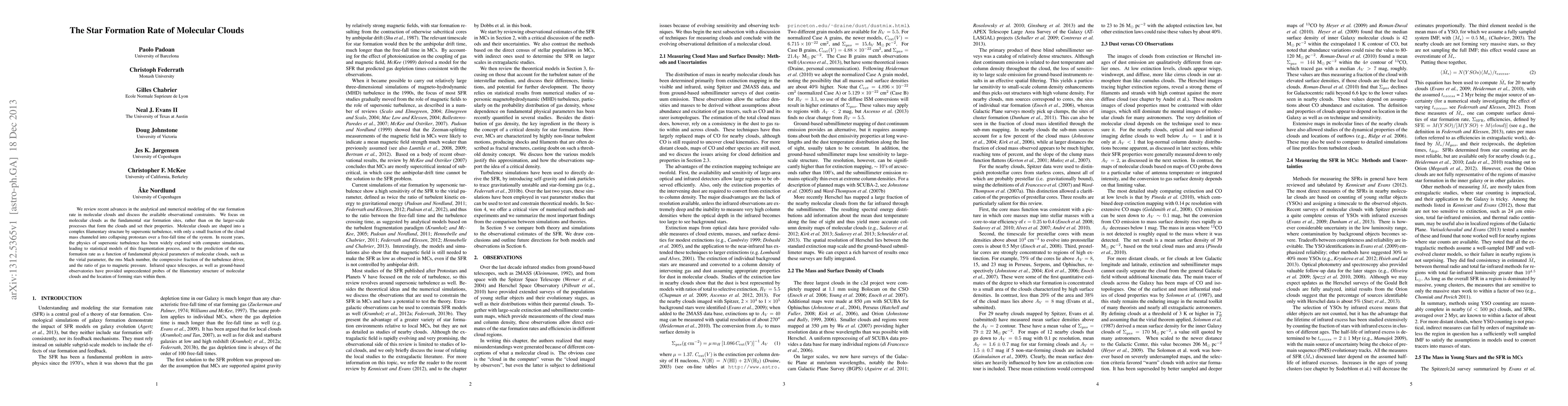 This paper reviews recent advances in modeling the star formation rate in molecular clouds, emphasizing the role of supersonic turbulence and observational constraints. It highlights the complex filamentary structure of molecular clouds and the statistical models predicting star formation rates based on physical parameters.