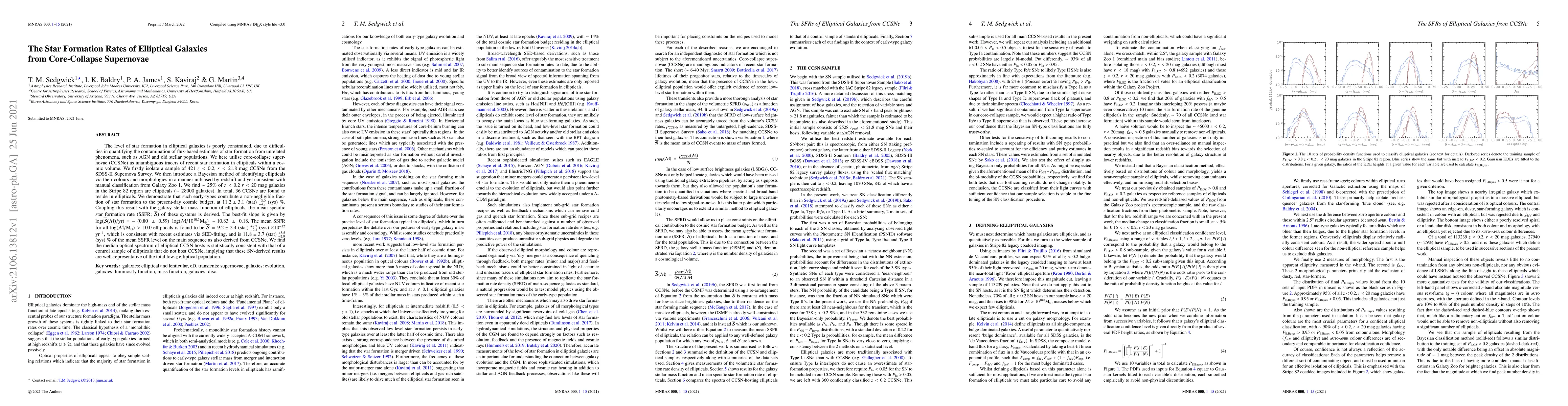 This paper investigates star formation rates in elliptical galaxies using core-collapse supernovae (CCSNe) as tracers, finding that these galaxies contribute 11.2% to the present-day cosmic star formation budget. The study derives a mean specific star formation rate for elliptical galaxies, consistent with recent estimates, and finds no significant difference in optical spectra between CCSNe host ellipticals and non-host ellipticals.