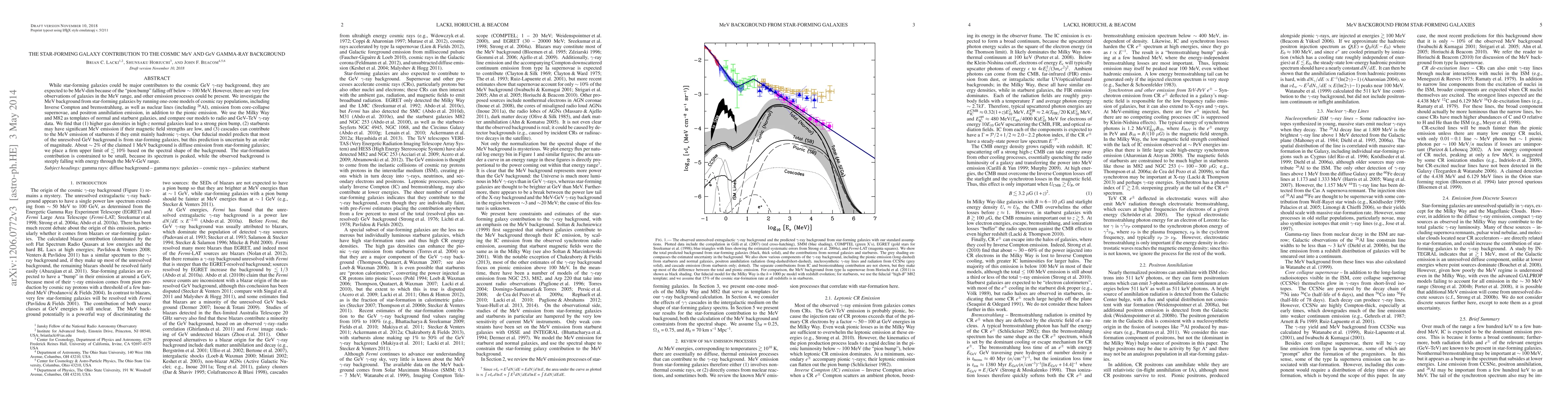 This study investigates the MeV gamma-ray background contribution from star-forming galaxies, finding that starbursts may have significant MeV emission under certain conditions. The research concludes that star-forming galaxies likely contribute most of the unresolved GeV background, though the exact contribution remains uncertain.