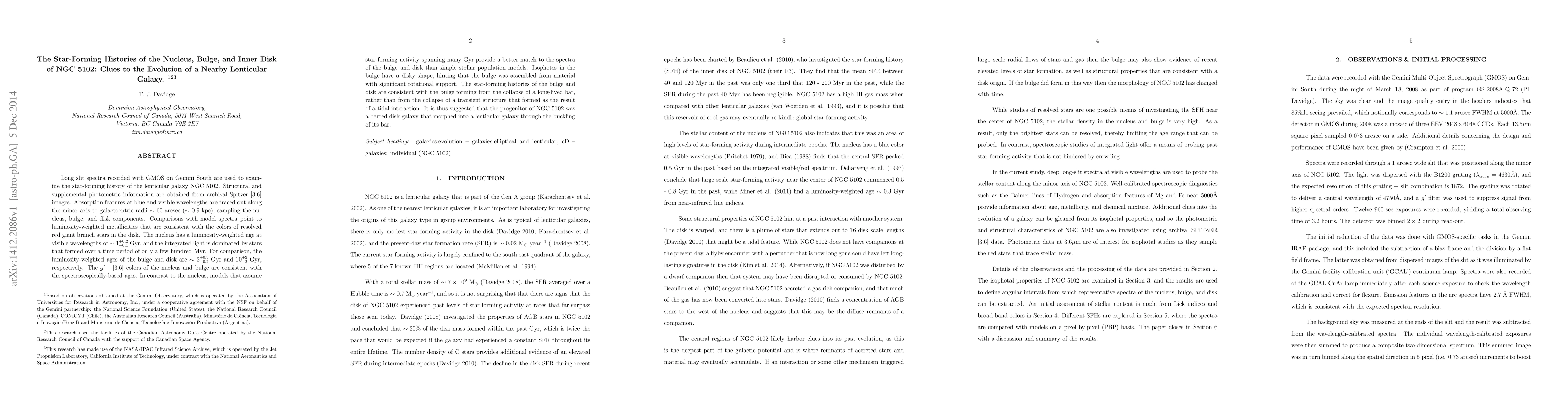 This study uses GMOS spectra and Spitzer images to analyze the star-forming history of NGC 5102, revealing a young nucleus (~1 Gyr) and older bulge (~2 Gyr) and disk (~10 Gyr). The bulge and disk show evidence of prolonged star-forming activity, suggesting the galaxy evolved from a barred disk.