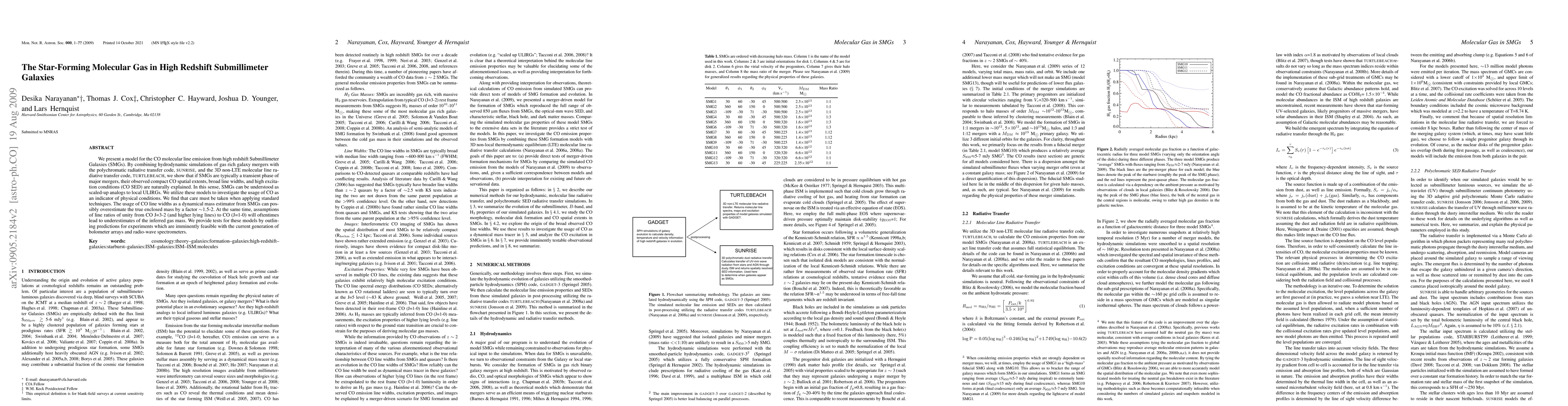 We present a model for the CO molecular line emission from high redshift Submillimeter Galaxies (SMGs). By combining hydrodynamic simulations of gas rich galaxy mergers with the polychromatic radiative transfer code, Sunrise, and the 3D non-LTE molecular line radiative transfer code, Turtlebeach, we show that if SMGs are typically a transient phase of major mergers, their observed compact CO spatial extents, broad line widths, and high excitation conditions (CO SED) are naturally explained. In this sense, SMGs can be understood as scaled-up analogs to local ULIRGs. We utilize these models to investigate the usage of CO as an indicator of physical conditions. We find that care must be taken when applying standard techniques. The usage of CO line widths as a dynamical mass estimator from SMGs can possibly overestimate the true enclosed mass by a factor ~1.5-2. At the same time, assumptions of line ratios of unity from CO J=3-2 (and higher lying lines) to CO (J=1-0) will oftentimes lead to underestimates of the inferred gas mass. We provide tests for these models by outlining predictions for experiments which are imminently feasible with the current generation of bolometer arrays and radio-wave spectrometers.