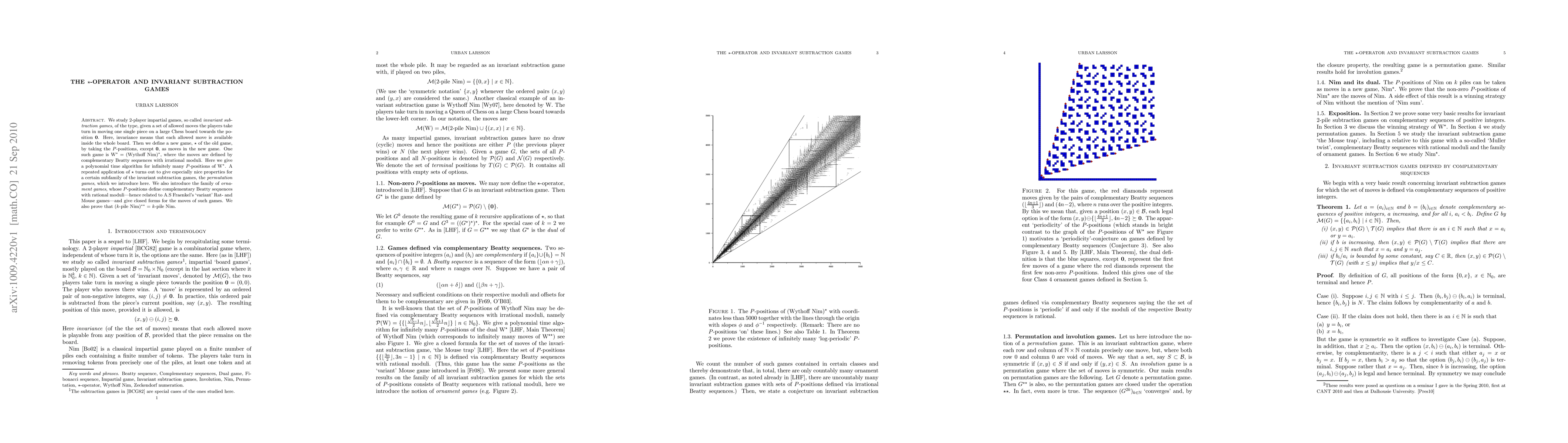 The paper introduces the $\star$-operator and analyzes its effects on invariant subtraction games, leading to the classification of permutation and ornament games, along with algorithms for determining $P$-positions.