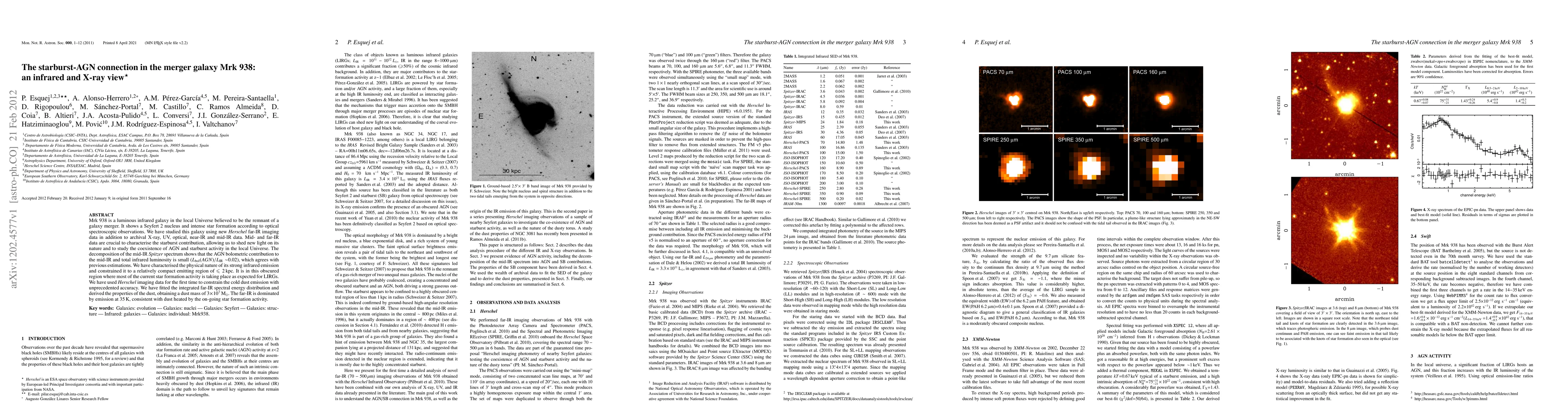 This study investigates the connection between starbursts and active galactic nuclei (AGN) in a merger galaxy, Mrk 938, using infrared and X-ray data. It finds that AGN activity is relatively small compared to starburst activity and is confined to a compact region with significant dust emission.