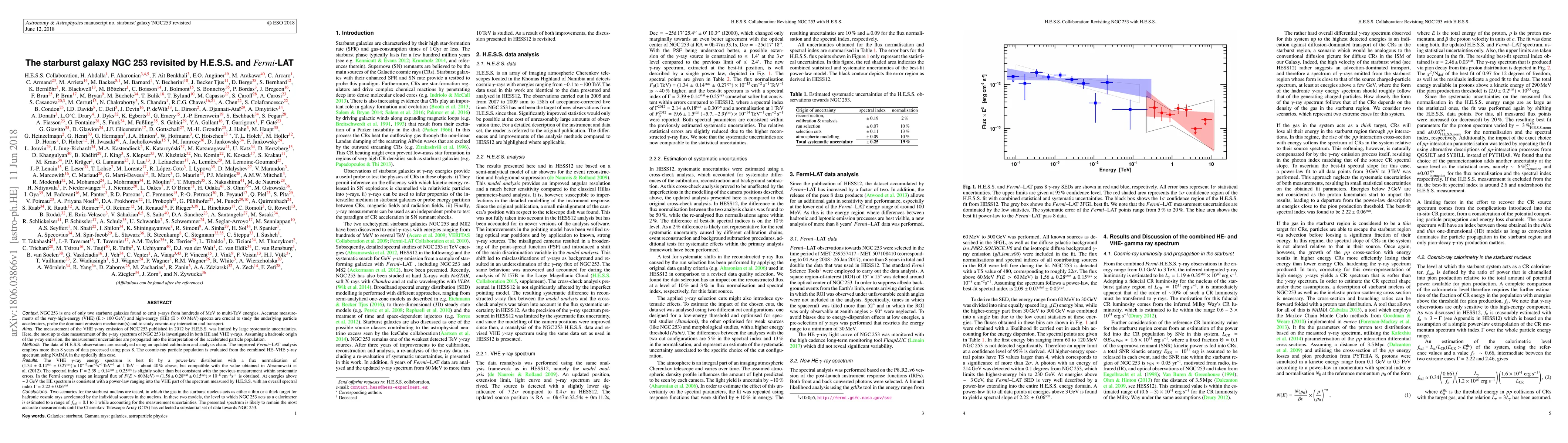 Researchers have re-analyzed data from the H.E.S.S. and Fermi-LAT telescopes to better understand the gamma-ray emission of starburst galaxy NGC 253, revealing a power-law energy spectrum in both high-energy (HE) and very-high-energy (VHE) gamma rays.