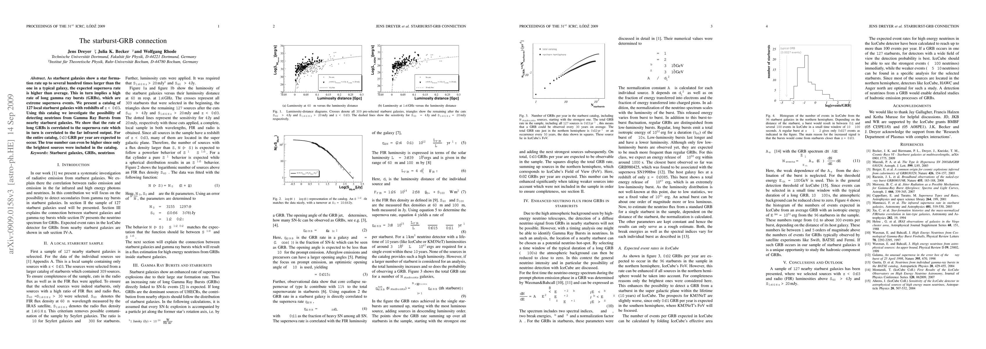 As starburst galaxies show a star formation rate up to several hundred times larger than the one in a typical galaxy, the expected supernova rate is higher than average. This in turn implies a high rate of long gamma ray bursts (GRBs), which are extreme supernova events. We present a catalog of 127 local starburst galaxies with redshifts of z<0.03. Using this catalog we investigate the possibility of detecting neutrinos from Gamma Ray Bursts from nearby starburst galaxies. We show that the rate of long GRBs is correlated to the supernova rate which in turn is correlated to the far infrared output. For the entire catalog, 0.03 GRB per year are expected to occur. The true number can even be higher since only the brightest sources were included in the catalog.