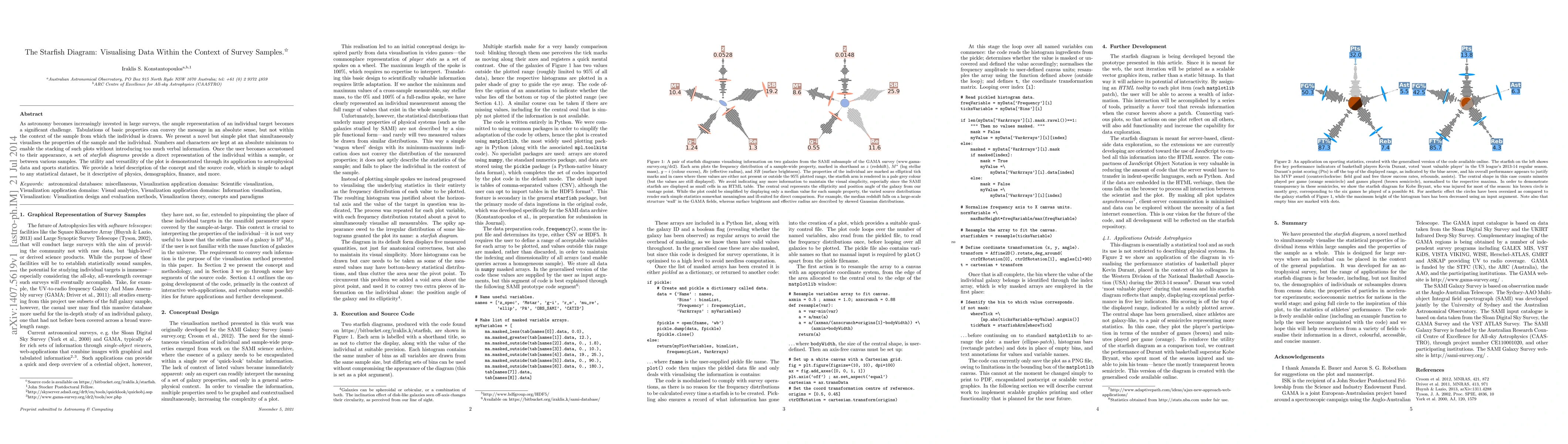 As astronomy becomes increasingly invested in large surveys, the ample representation of an individual target becomes a significant challenge. Tabulations of basic properties can convey the message in an absolute sense, but not within the context of the sample from which the individual is drawn. We present a novel but simple plot that simultaneously visualises the properties of the sample and the individual. Numbers and characters are kept at an absolute minimum to enable the stacking of such plots without introducing too much verbal information. Once the user becomes accustomed to their appearance, a set of 'starfish diagrams' provide a direct representation of the individual within a sample, or between various samples. The utility and versatility of the plot is demonstrated through its application to astrophysical data and sports statistics. We provide a brief description of the concept and the source code, which is simple to adapt to any statistical dataset, be it descriptive of physics, demographics, finance, and more.
