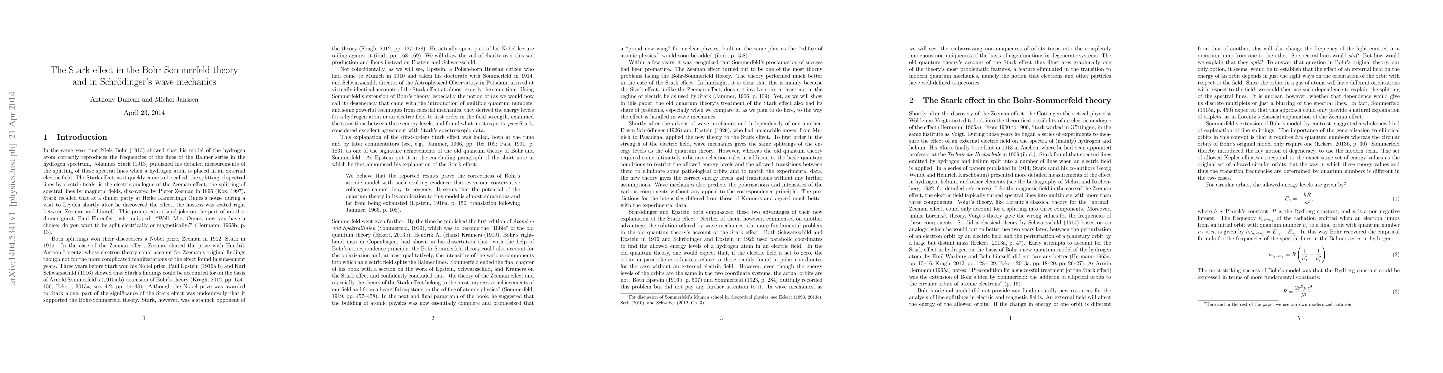 The explanation of the first-order Stark effect in hydrogen by Epstein and Schwarzschild in 1916 was seen as a great success for the old quantum theory. Yet, it also revealed some serious limitations of the theory. To recover the experimentally found line splittings, one had to make some arbitrary assumptions in addition to the basic quantum conditions to rule out certain orbits. The calculation of intensities of lines on the basis of Bohr's correspondence principle likewise required arbitrary additional assumptions. Finally, the actual orbits predicted by the old quantum theory depend on the coordinates chosen to impose the quantum conditions. Both Sommerfeld and Epstein recognized this problem but offered no solution for it. All these problems were solved in 1926 when Schr\"odinger and Epstein explained the Stark effect on the basis of the new wave mechanics. The calculations in the two theories are similar. In particular, both the Schr\"odinger equation in the new theory and the Hamilton-Jacobi equation in the old theory are separated in parabolic coordinates. The new quantum mechanics determines all allowed states and transitions without any additional assumptions. It also replaced the ambiguous guidelines based on the correspondence principle for calculating intensities by the straightforward prescription that intensities are given by the squares of the matrix elements of position, leading to results that agreed much better with the experimental data. Finally, the embarrassing non-uniqueness of orbits in the old quantum theory turned into the innocuous non-uniqueness of bases of eigenfunctions in wave mechanics. To this day, the Stark effect is remembered as one of the few qualified successes of the old quantum theory. We suspect that this is largely because after 1926 it became just one of the many unqualified successes of the new quantum theory.