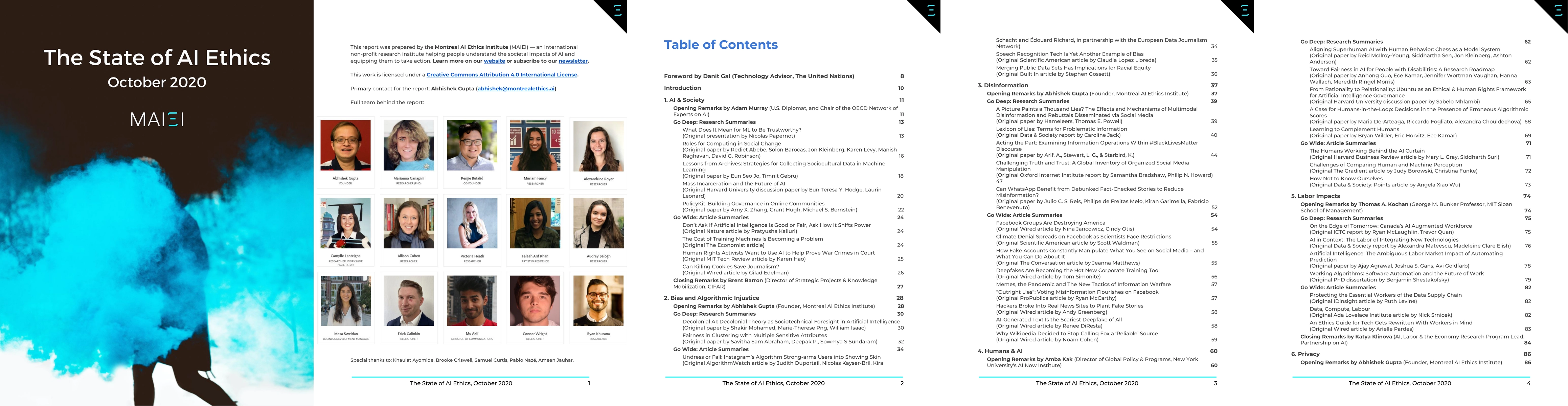 The State of AI Ethics Report (October 2020) summarizes recent developments in AI ethics, covering areas such as bias, privacy, and societal impacts, with insights from leading experts. It serves as a reference for professionals and policymakers to understand and engage with the evolving field of AI ethics.