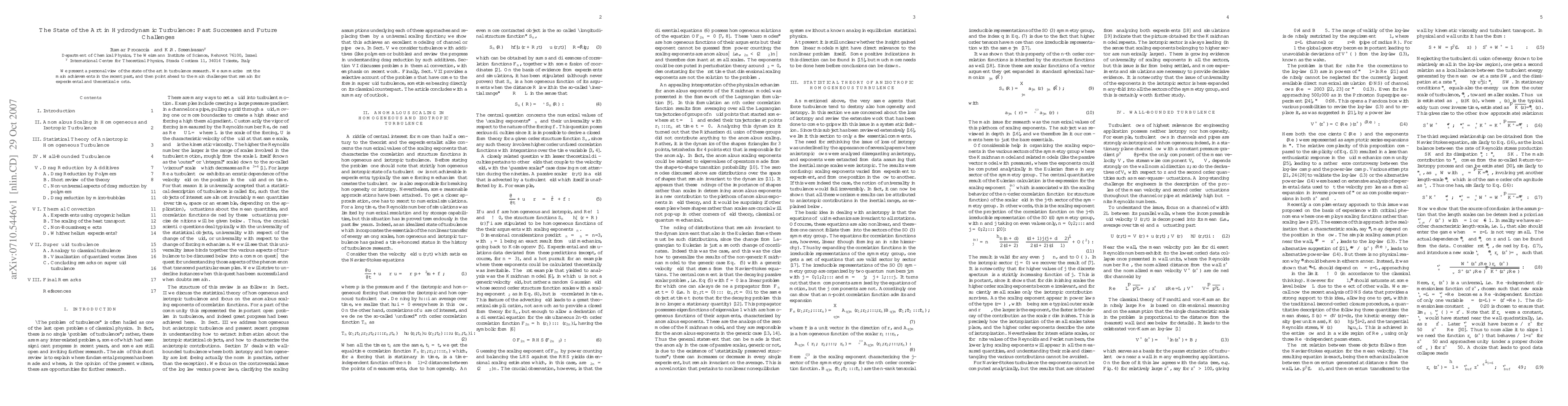 We present a personal view of the state of the art in turbulence research. We summarize first the main achievements in the recent past, and then point ahead to the main challenges that remain for experimental and theoretical efforts.