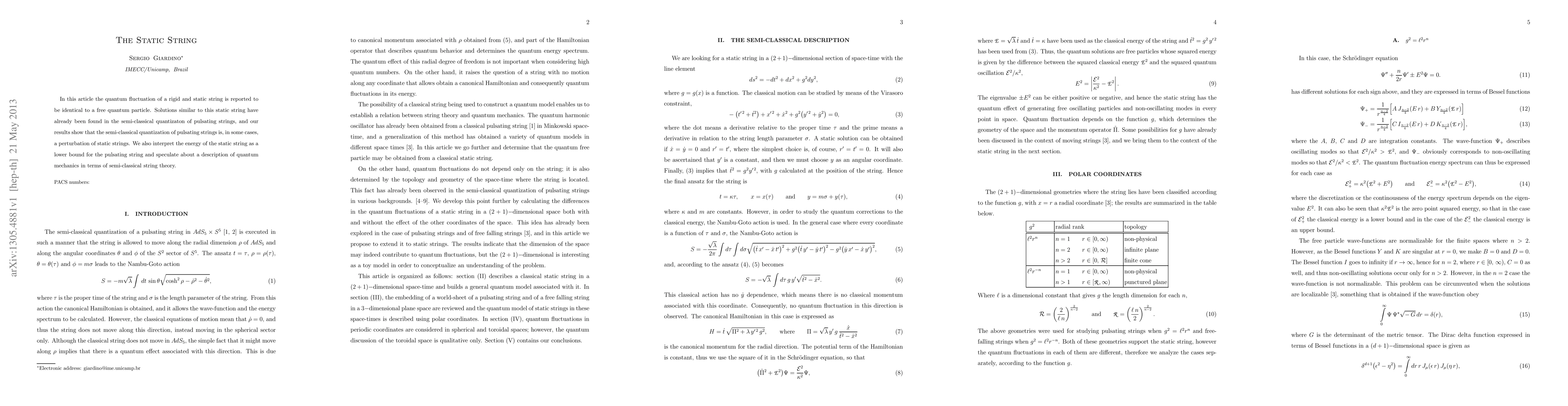 In this article the quantum fluctuation of a rigid and static string is reported to be identical to a free quantum particle. Solutions similar to this static string have already been found in the semi-classical quantizaton of pulsating strings, and our results show that the semi-classical quantization of pulsating strings is, in some cases, a perturbation of static strings. We also interpret the energy of the static string as a lower bound for the pulsating string and speculate about a description of quantum mechanics in terms of semi-classical string theory.