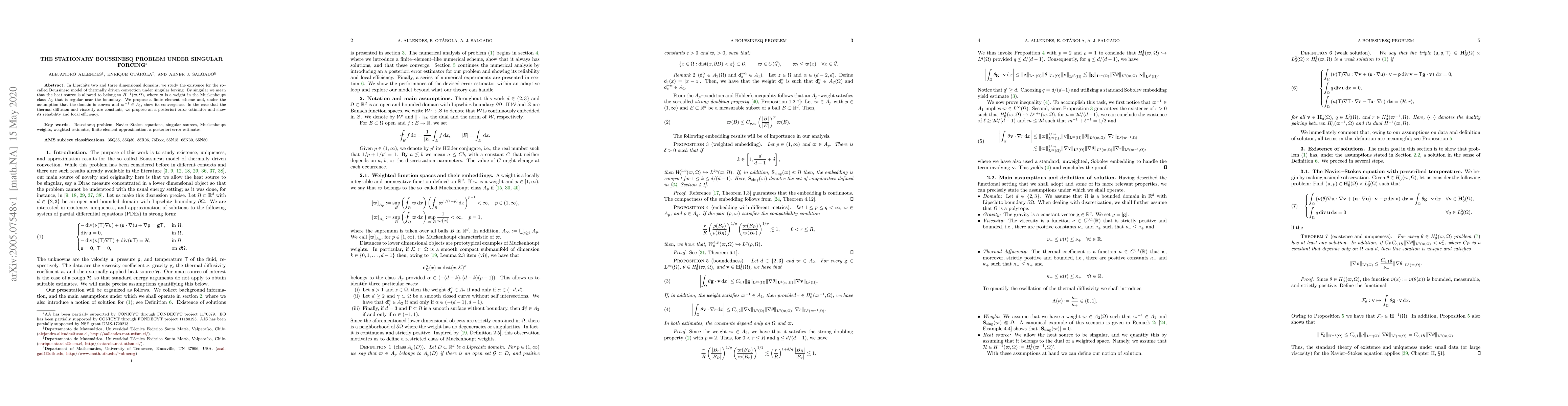 In Lipschitz two and three dimensional domains, we study the existence for the so--called Boussinesq model of thermally driven convection under singular forcing. By singular we mean that the heat source is allowed to belong to $H^{-1}(\varpi,\Omega)$, where $\varpi$ is a weight in the Muckenhoupt class $A_2$ that is regular near the boundary. We propose a finite element scheme and, under the assumption that the domain is convex and $\varpi^{-1} \in A_1$, show its convergence. In the case that the thermal diffusion and viscosity are constants, we propose an a posteriori error estimator and show its reliability and local efficiency.