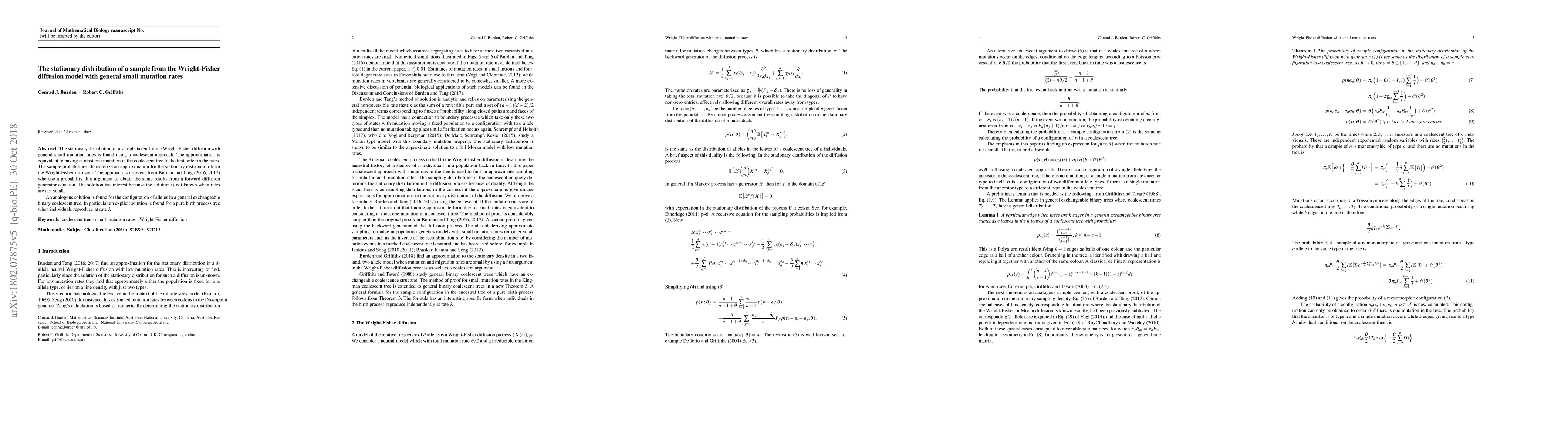 Researchers find an approximation for the stationary distribution of a sample from the Wright-Fisher diffusion model using a coalescent approach, which is distinct from previous methods and has implications for understanding genetic drift in populations with small mutation rates.