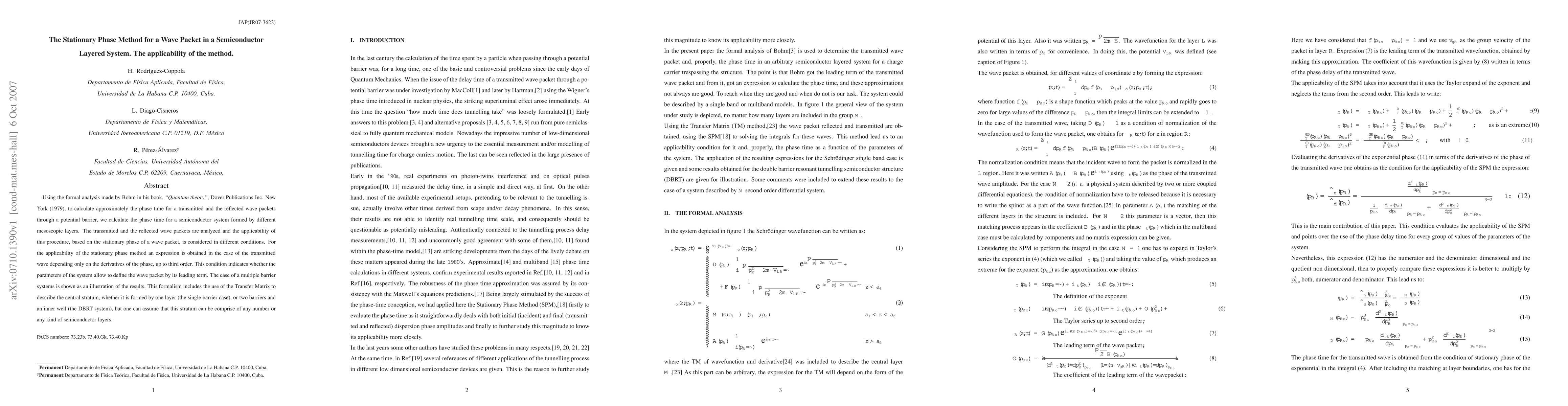 This paper applies Bohm's stationary phase method to estimate the phase time for wave packets transmitted and reflected through a semiconductor layered system. It derives conditions under which the method is applicable, particularly focusing on the derivatives of the phase up to third order, and illustrates its use in multiple barrier systems.