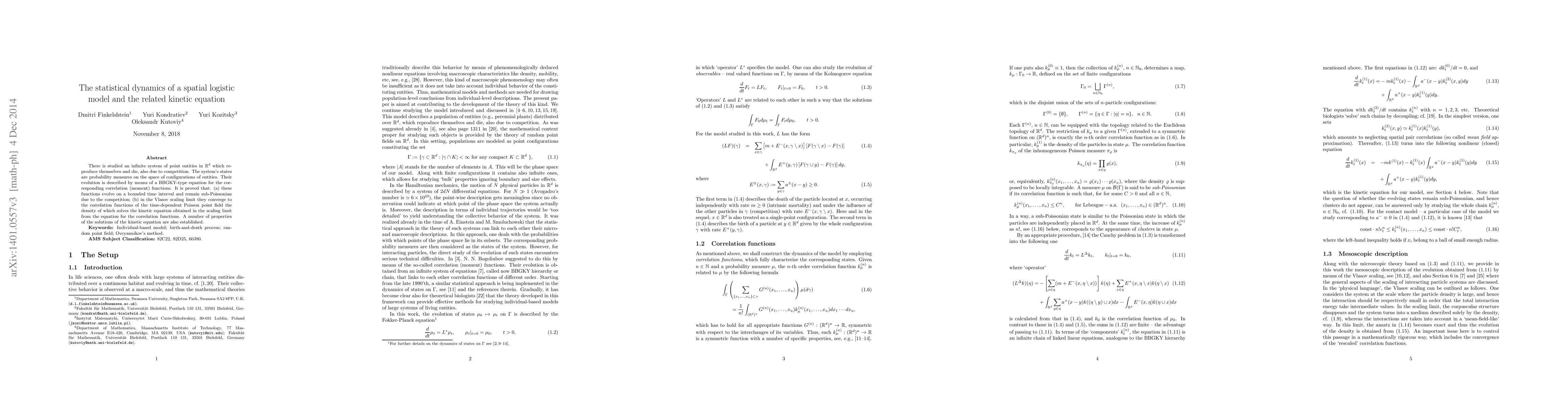 There is studied an infinite system of point entities in $\mathbb{R}^d$ which reproduce themselves and die, also due to competition. The system's states are probability measures on the space of configurations of entities. Their evolution is described by means of a BBGKY-type equation for the corresponding correlation (moment) functions. It is proved that: (a) these functions evolve on a bounded time interval and remain sub-Poissonian due to the competition; (b) in the Vlasov scaling limit they converge to the correlation functions of the time-dependent Poisson point field the density of which solves the kinetic equation obtained in the scaling limit from the equation for the correlation functions. A number of properties of the solutions of the kinetic equation are also established.