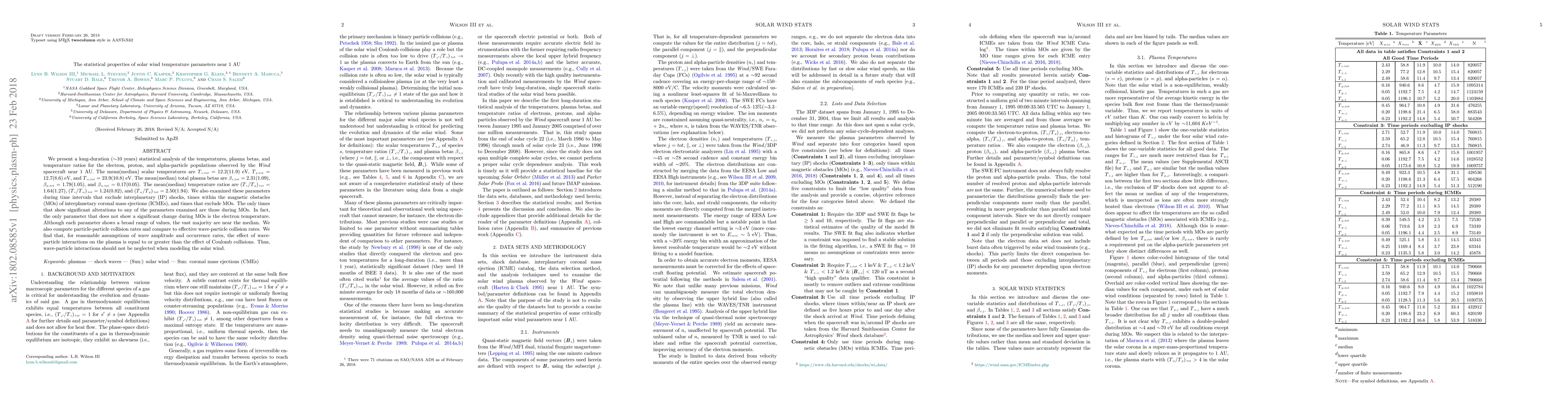 A 10-year study of solar wind temperatures, plasma betas, and ratios found that temperatures varied significantly near 1 AU, but mostly stayed around the median values, with magnetic obstacles causing changes in some parameters.