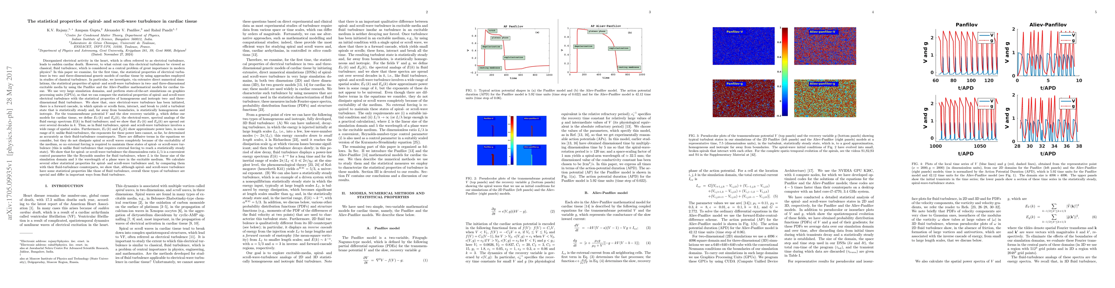 Disorganized electrical activity in the heart leads to sudden cardiac death. To what extent can this electrical turbulence be viewed as classical fluid turbulence,which is an important central problem in modern physics? We investigate,for the first time,via extensive DNSs,the statistical properties of spiral-and scroll-wave turbulence in two- and three-dimensional excitable media by using approaches employed in studies of classical turbulence. We use the Panfilov and the Aliev-Panfilov mathematical models for cardiac tissue. We show that once electrical-wave turbulence has been initiated,there is a forward cascade,in which spirals or scrolls form,interact,and break to yield a turbulent state that is statistically steady and,far away from boundaries,is statistically homogeneous and isotropic. For the transmembrane potential $V$ and the slow recovery variable $g$,which define our models,we define $E_V(k)$ and $E_g(k)$,the electrical-wave analogs of the fluid energy spectrum $E(k)$ in fluid turbulence. We show that $E_V(k)$ and $E_g(k)$ are spread out over several decades in $k$. Thus spiral- and scroll-wave turbulence involves a wide range of spatial scales. $E_V(k)$ and $E_g(k)$ show approximate power laws,in some range of $k$, however,their exponents cannot be determined as accurately as their fluid-turbulence counterparts. The dimensionless ratio $L/\lambda$ is a convenient control parameter like the Reynolds number for fluid turbulence,where $L$ is the linear size of the domain and $\lambda$ the wavelength of a plane wave in the medium. By comparing several other statistical properties for spiral- and scroll-wave turbulence with their fluid-turbulence counterparts,we show that,although spiral- and scroll-wave turbulence have some statistical properties like those of fluid turbulence,overall these types of turbulence are special and differ in important ways from fluid turbulence.