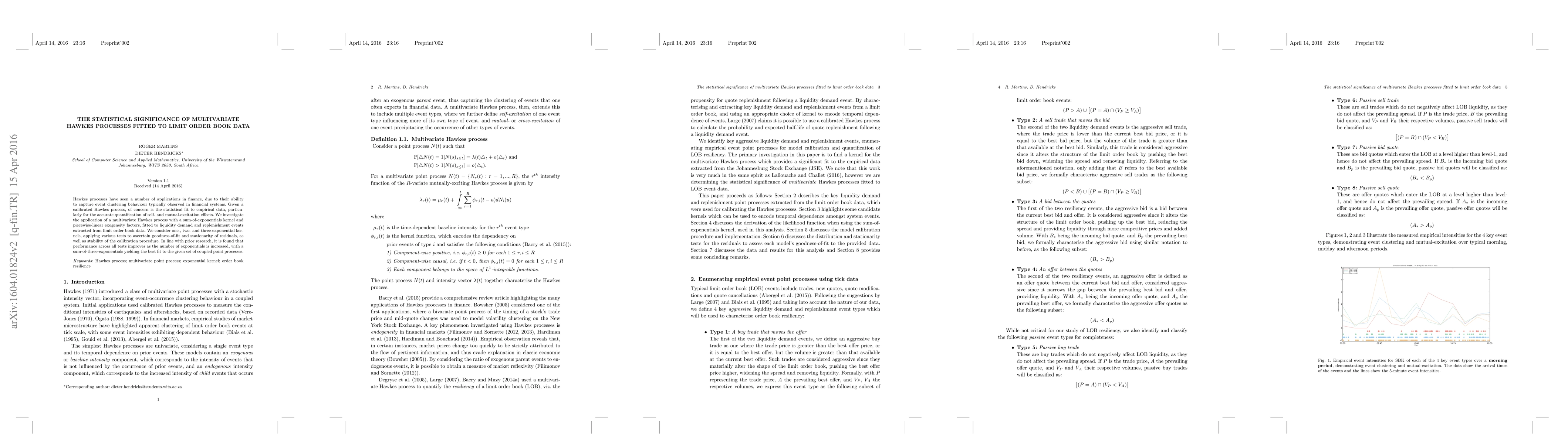 This paper examines the statistical significance of multivariate Hawkes processes fitted to limit order book data, finding that a sum-of-three-exponentials kernel provides the best fit for capturing event clustering and self- and mutual-excitation effects in liquidity demand and replenishment events. Various tests confirm the improved performance and stability of the calibration procedure with more complex kernels.
