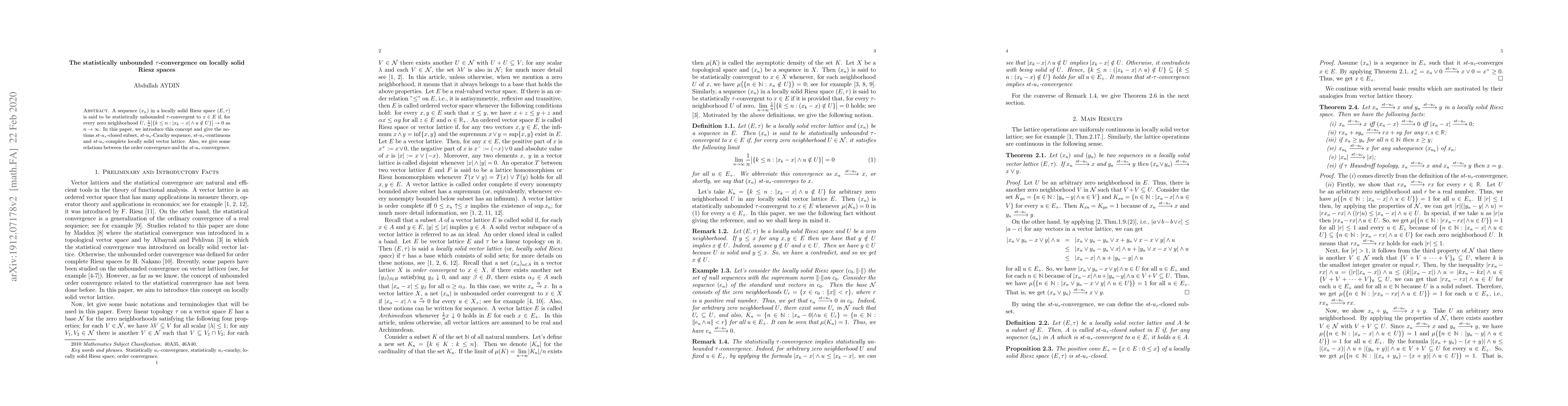 This paper introduces the concept of statistically unbounded $\tau$-convergence in locally solid Riesz spaces, defining $st$-$u_\tau$-closed subsets, Cauchy sequences, continuity, and completeness. It also explores relationships between order convergence and $st$-$u_\tau$-convergence.