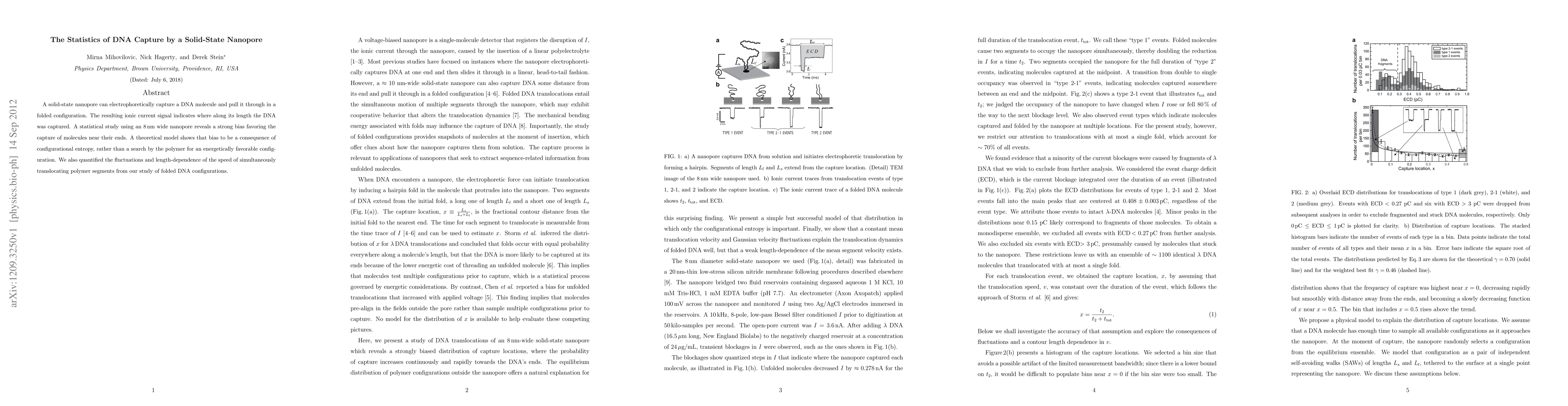 This study investigates the statistical behavior of DNA capture by a solid-state nanopore, revealing a strong preference for end-capture due to configurational entropy, rather than energy minimization. The research also quantifies the fluctuations and length-dependence of DNA translocation speed through the nanopore.