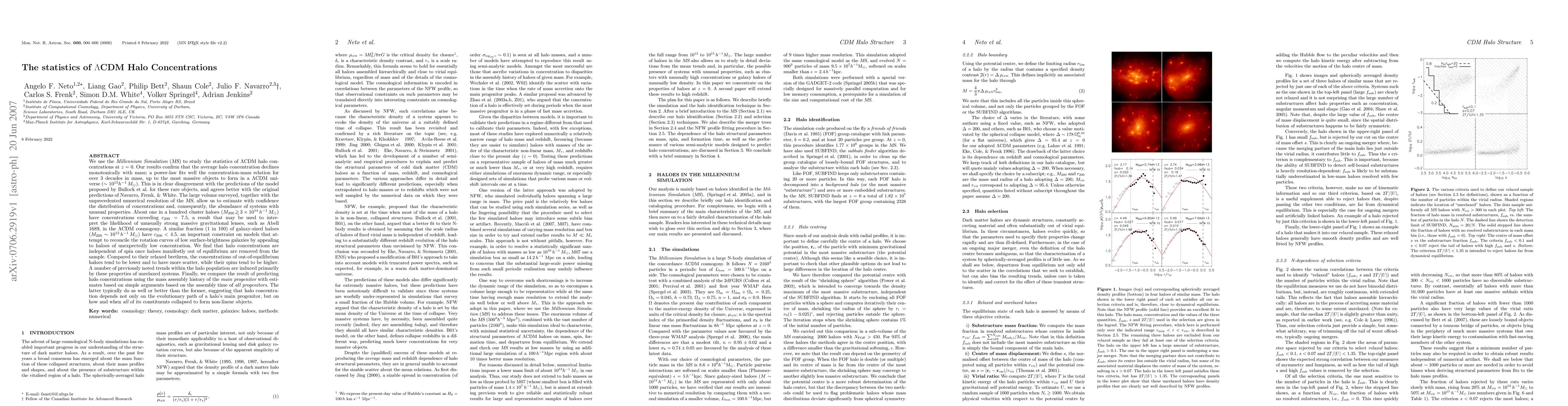 We use the Millennium Simulation (MS) to study the statistics of LCDM halo concentrations at z = 0. Our results confirm that the average halo concentration declines monotonically with mass; a power-law fits well the concentration-mass relation for over 3 decades in mass, up to the most massive objects to form in a LCDM universe (~ 10^15 h^-1 Msol). This is in clear disagreement with the predictions of the model proposed by Bullock et al. for these rare objects, and agrees better with the original predictions of Navarro, Frenk, & White. The large volume surveyed, together with the unprecedented numerical resolution of the MS, allow us to estimate with confidence the distribution of concentrations and, consequently, the abundance of systems with unusual properties. About one in a hundred cluster haloes (M200 >~ 3x10^14 h^-1 Msol) have concentrations exceeding c200 = 7.5, a result that may be used to interpret the likelihood of unusually strong massive gravitational lenses, such as Abell 1689, in the LCDM cosmogony. A similar fraction (1 in 100) of galaxy-sized haloes (M200 ~ 10^12 h^-1 Msol) have c200 < 4.5, an important constraint on models that attempt to reconcile the rotation curves of low surface-brightness galaxies by appealing to haloes of unexpectedly low concentration. We find that halo concentrations are independent of spin once haloes manifestly out of equilibrium are removed from the sample. Compared to their relaxed brethren, the concentrations of out-of-equilibrium haloes tend to be lower and to have more scatter, while their spins tend to be higher... (continue)
