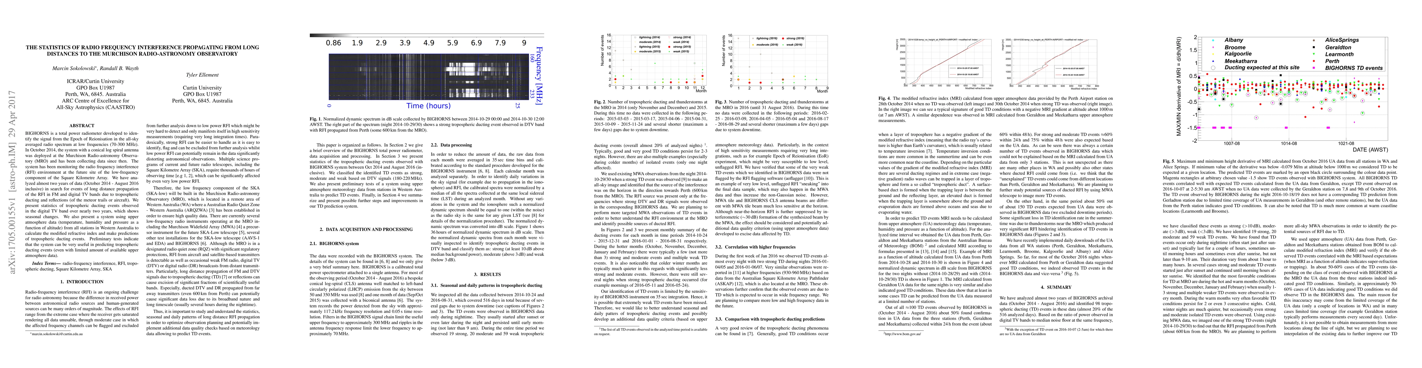 This paper analyzes two years of data from the BIGHORNS radiometer at the Murchison Radio-astronomy Observatory to identify long-distance RFI propagation events, particularly in the digital TV band. It presents statistical observations of tropospheric ducting events and introduces a predictive system using upper atmosphere data to forecast such events.