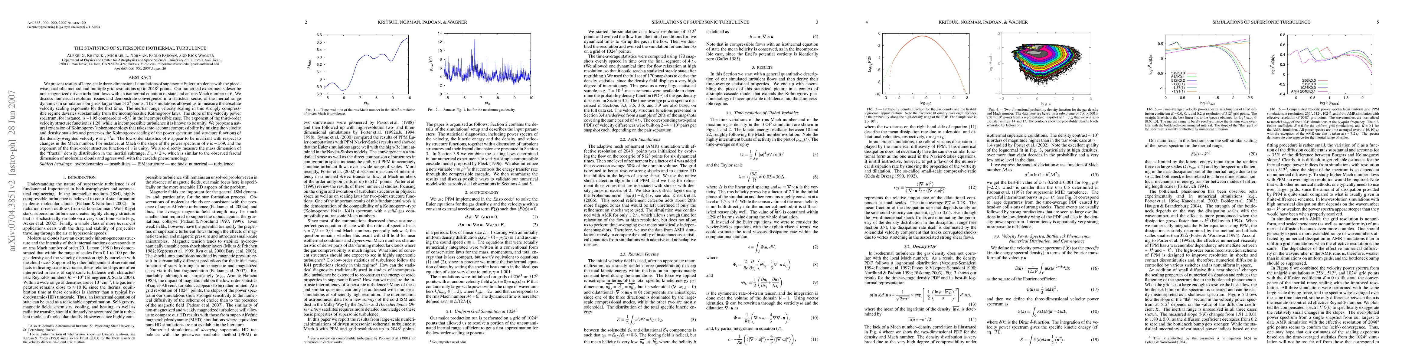 This paper reports on large-scale simulations of supersonic isothermal turbulence, revealing significant deviations from incompressible turbulence laws. The study proposes an extended Kolmogorov model that accounts for compressibility, showing that density-weighted velocity maintains Kolmogorov scaling, with the fractal dimension of density distribution in the inertial subrange found to be 2.4.