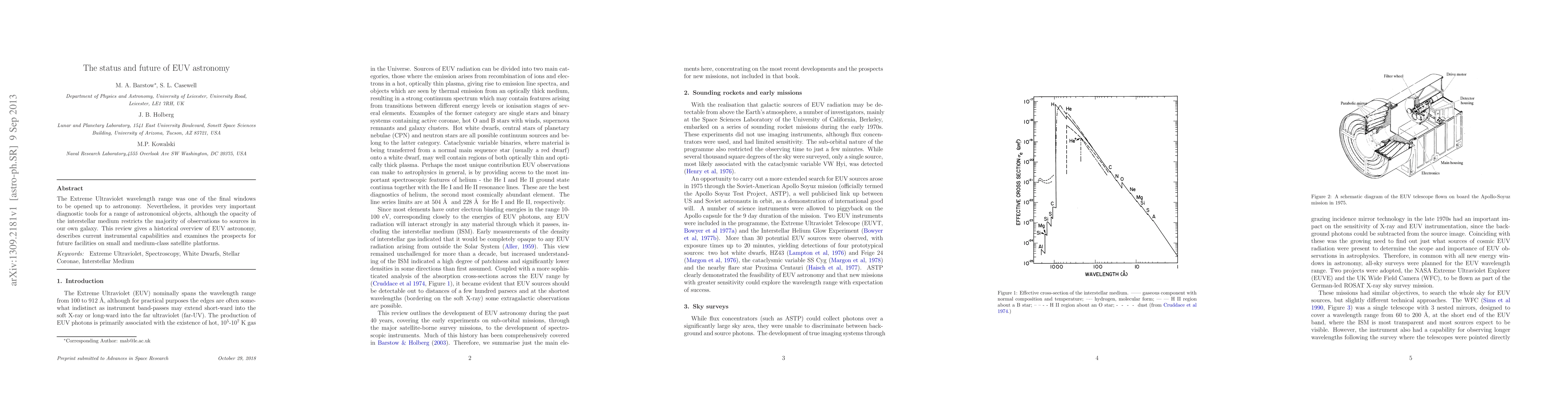 The Extreme Ultraviolet wavelength range was one of the final windows to be opened up to astronomy. Nevertheless, it provides very important diagnostic tools for a range of astronomical objects, although the opacity of the interstellar medium restricts the majority of observations to sources in our own galaxy. This review gives a historical overview of EUV astronomy, describes current instrumental capabilities and examines the prospects for future facilities on small and medium-class satellite platforms.