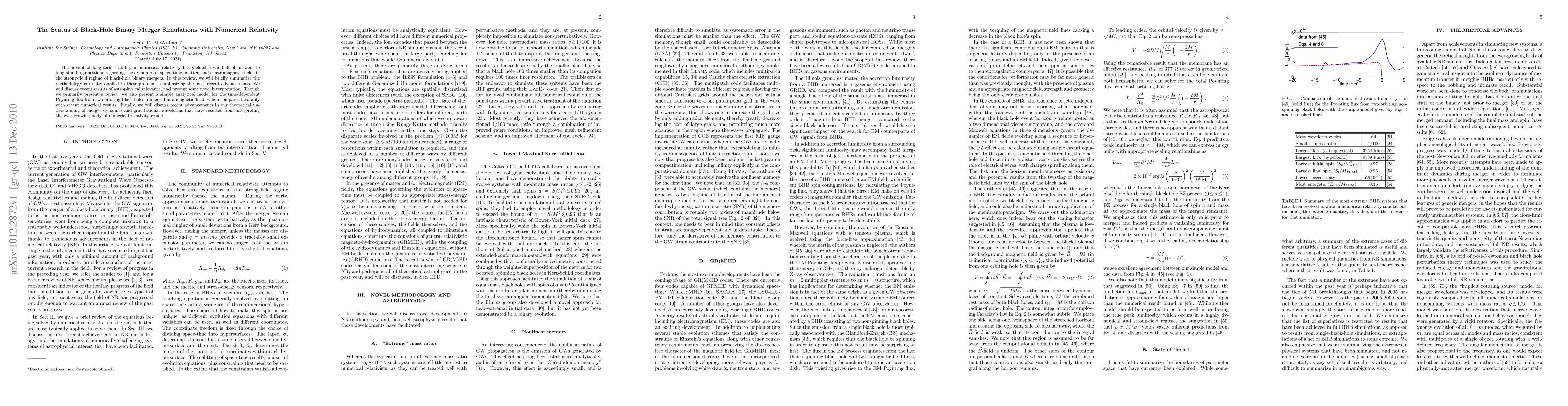 This paper reviews recent advancements in numerical relativity simulations of black-hole binary mergers, highlighting methodologies and significant astrophysical results. It also presents a simple analytical model for the time-dependent Poynting flux, which aligns well with numerical findings, and discusses enhanced theoretical insights into merger dynamics and gravitational waveforms.