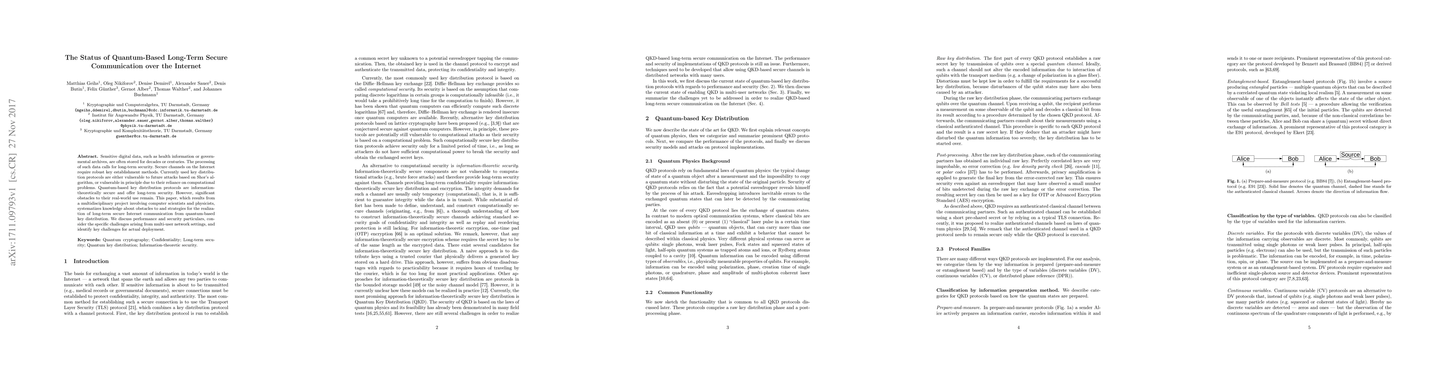 Sensitive digital data, such as health information or governmental archives, are often stored for decades or centuries. The processing of such data calls for long-term security. Secure channels on the Internet require robust key establishment methods. Currently used key distribution protocols are either vulnerable to future attacks based on Shor's algorithm, or vulnerable in principle due to their reliance on computational problems. Quantum-based key distribution protocols are information-theoretically secure and offer long-term security. However, significant obstacles to their real-world use remain. This paper, which results from a multidisciplinary project involving computer scientists and physicists, systematizes knowledge about obstacles to and strategies for the realization of long-term secure Internet communication from quantum-based key distribution. We discuss performance and security particulars, consider the specific challenges arising from multi-user network settings, and identify key challenges for actual deployment.