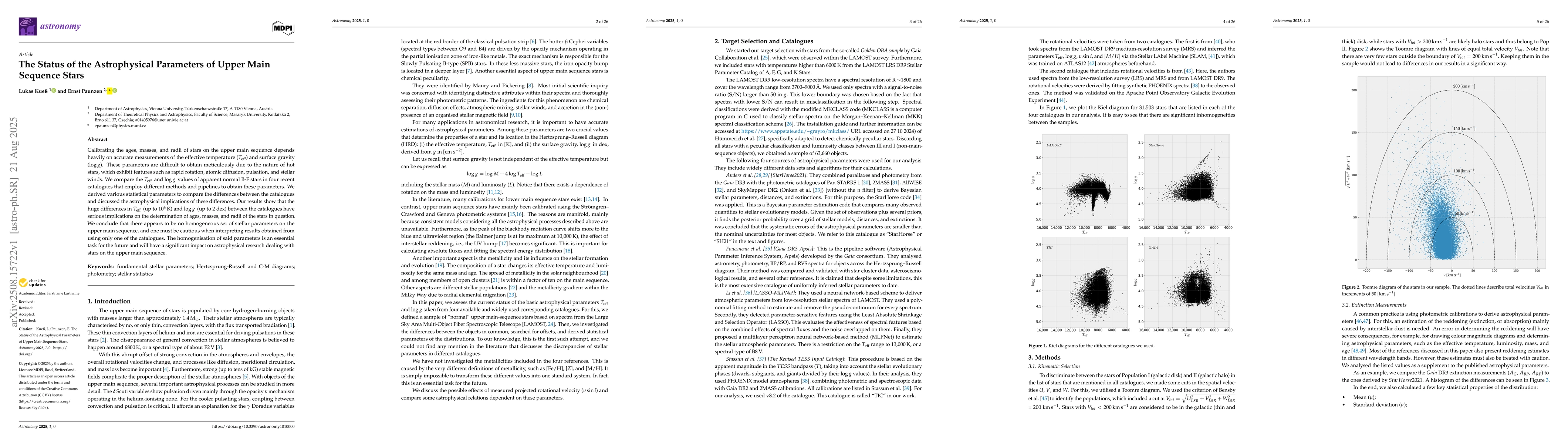 Calibrating the ages, masses, and radii of stars on the upper main sequence depends heavily on accurate measurements of the effective temperature ($T_\mathrm{eff}$) and surface gravity ($\log g$). These parameters are difficult to obtain meticulously due to the nature of hot stars, which exhibit features such as rapid rotation, atomic diffusion, pulsation, and stellar winds. We compare the $T_\mathrm{eff}$, and $\log g$, values of apparent normal B-F stars in four recent catalogues that employ different methods and pipelines to obtain these parameters. We derived various statistical parameters to compare the differences between the catalogues and discussed the astrophysical implications of these differences. Our results show that the huge differences in $T_\mathrm{eff}$, (up to $10^4$\,K) and $\log g$, (up to 2 dex) between the catalogues have serious implications on the determination of ages, masses, and radii of the stars in question. We conclude that there appears to be no homogeneous set of stellar parameters on the upper main sequence, and one must be cautious when interpreting results obtained from using only one of the catalogues. The homogenisation of said parameters is an essential task for the future and will have a significant impact on astrophysical research dealing with stars on the upper main sequence.