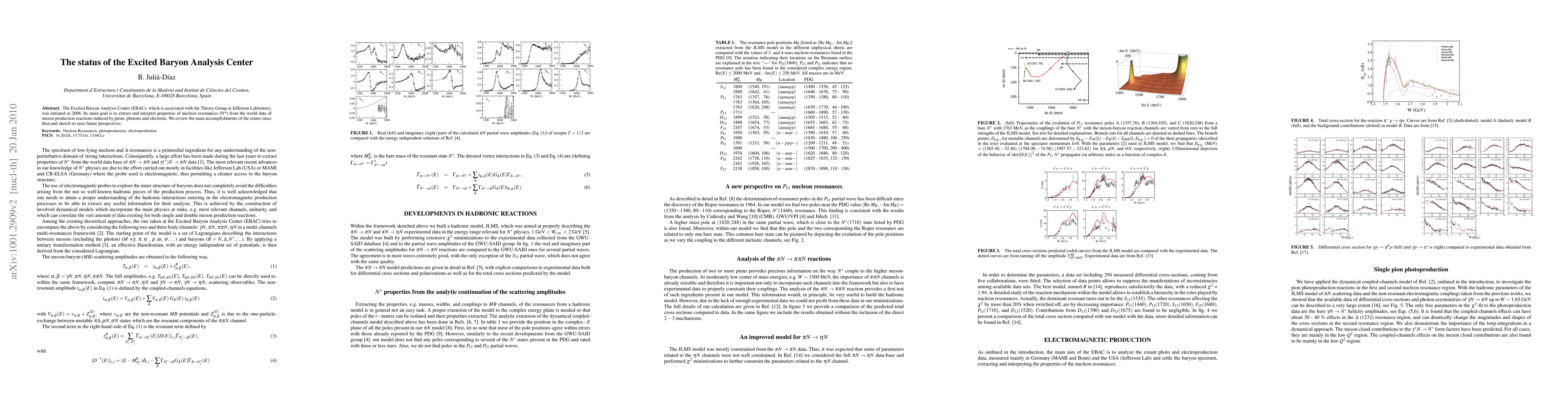 The Excited Baryon Analysis Center (EBAC), which is associated with the Theory Group at Jefferson Laboratory, was initiated in 2006. Its main goal is to extract and interpret properties of nucleon resonances (N*) from the world data of meson production reactions induced by pions, photons and electrons. We review the main accomplishments of the center since then and sketch its near future perspectives.