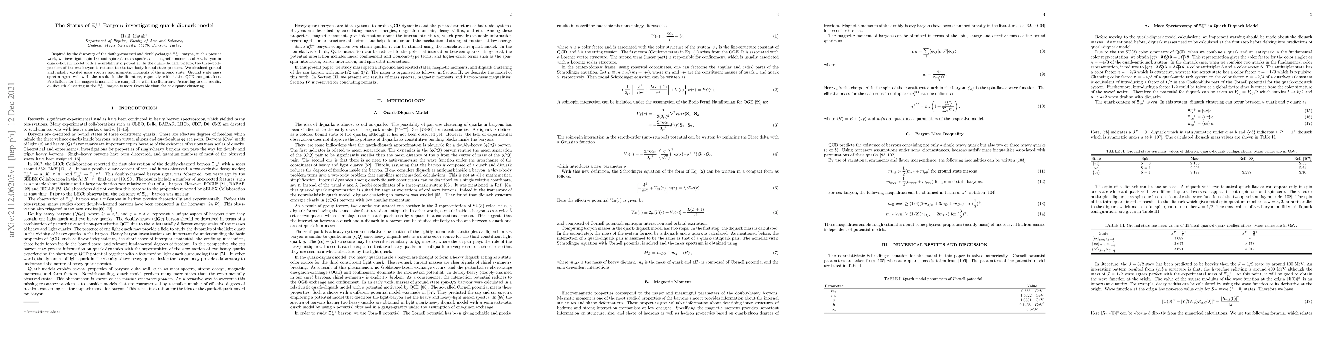 This research paper investigates the properties of the $oxed{ccu}$ baryon using a quark-diquark model, finding that $cu$ diquark clustering is more favorable than $cc$ diquark clustering.