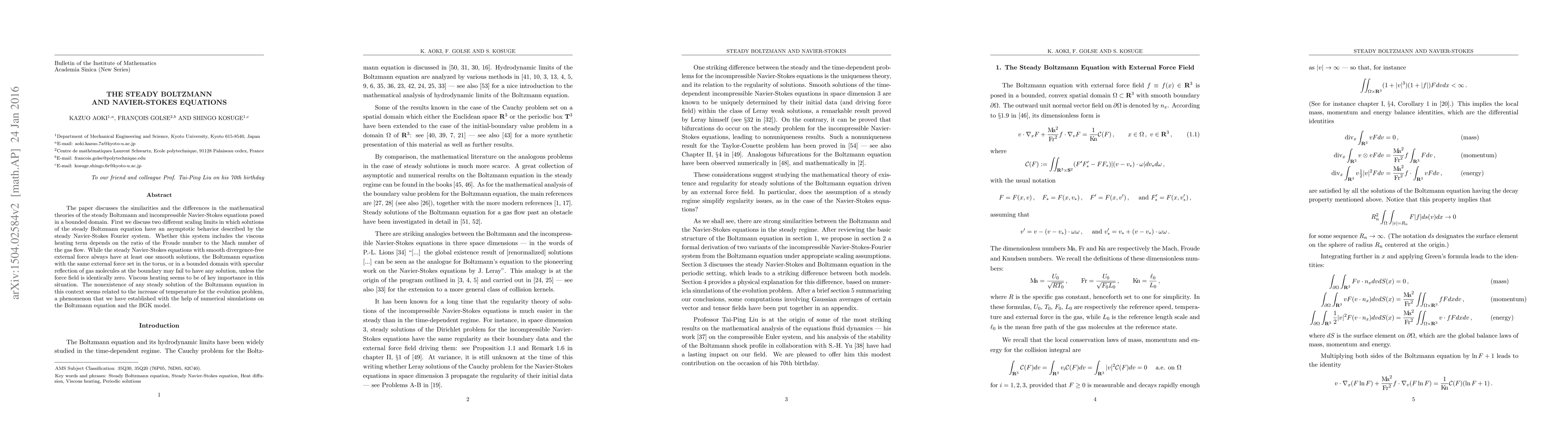 The paper discusses the similarities and the differences in the mathematical theories of the steady Boltzmann and incompressible Navier-Stokes equations posed in a bounded domain. First we discuss two different scaling limits in which solutions of the steady Boltzmann equation have an asymptotic behavior described by the steady Navier-Stokes Fourier system. Whether this system includes the viscous heating term depends on the ratio of the Froude number to the Mach number of the gas flow. While the steady Navier-Stokes equations with smooth divergence-free external force always have at least one smooth solutions, the Boltzmann equation with the same external force set in the torus, or in a bounded domain with specular reflection of gas molecules at the boundary may fail to have any solution, unless the force field is identically zero. Viscous heating seems to be of key importance in this situation. The nonexistence of any steady solution of the Boltzmann equation in this context seems related to the increase of temperature for the evolution problem, a phenomenon that we have established with the help of numerical simulations on the Boltzmann equation and the BGK model.