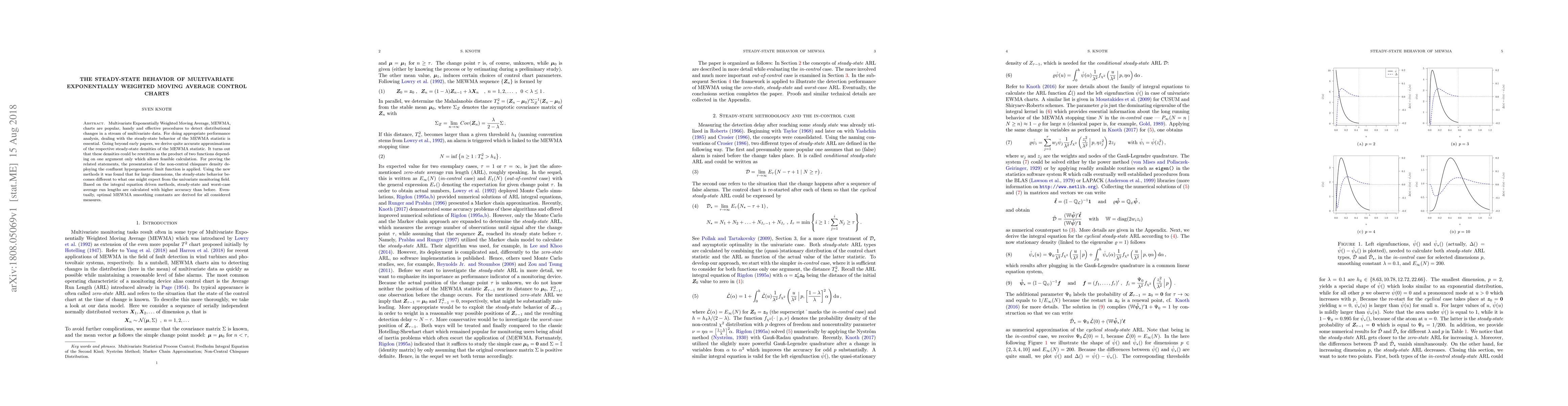 Multivariate Exponentially Weighted Moving Average, MEWMA, charts are popular, handy and effective procedures to detect distributional changes in a stream of multivariate data. For doing appropriate performance analysis, dealing with the steady-state behavior of the MEWMA statistic is essential. Going beyond early papers, we derive quite accurate approximations of the respective steady-state densities of the MEWMA statistic. It turns out that these densities could be rewritten as the product of two functions depending on one argument only which allows feasible calculation. For proving the related statements, the presentation of the non-central chisquare density deploying the confluent hypergeometric limit function is applied. Using the new methods it was found that for large dimensions, the steady-state behavior becomes different to what one might expect from the univariate monitoring field. Based on the integral equation driven methods, steady-state and worst-case average run lengths are calculated with higher accuracy than before. Eventually, optimal MEWMA smoothing constants are derived for all considered measures.