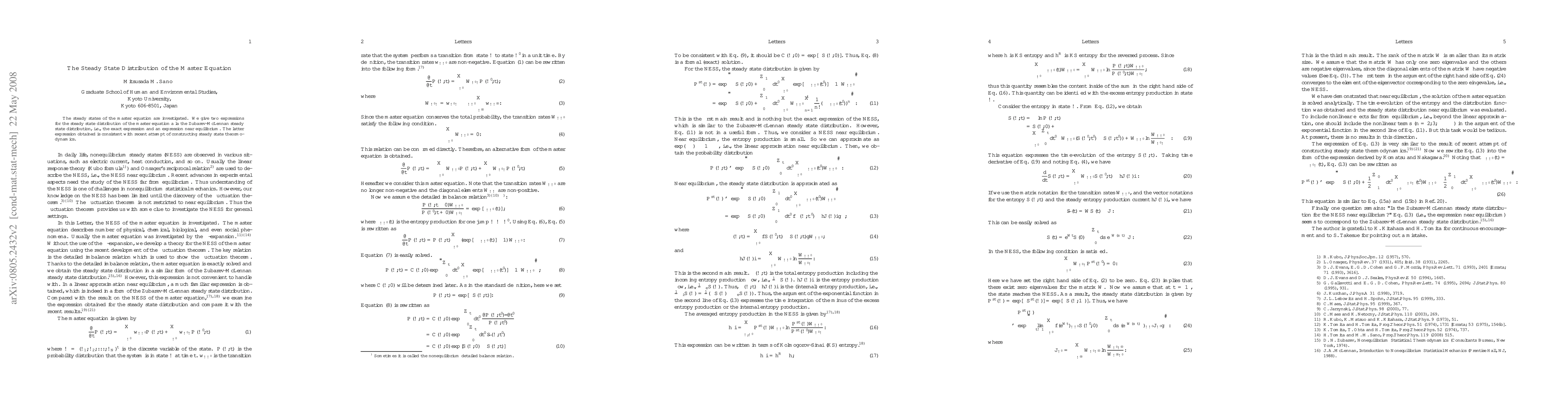 Summary: This paper explores the steady states of the master equation, providing both an exact expression and an equilibrium-near approximation for the steady state distribution, aligning with recent developments in steady state thermodynamics.