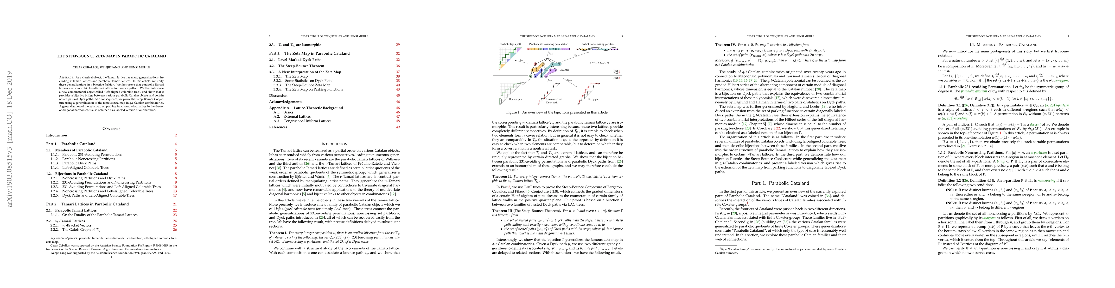 As a classical object, the Tamari lattice has many generalizations, including $\nu$-Tamari lattices and parabolic Tamari lattices. In this article, we unify these generalizations in a bijective fashion. We first prove that parabolic Tamari lattices are isomorphic to $\nu$-Tamari lattices for bounce paths $\nu$. We then introduce a new combinatorial object called `left-aligned colorable tree', and show that it provides a bijective bridge between various parabolic Catalan objects and certain nested pairs of Dyck paths. As a consequence, we prove the Steep-Bounce Conjecture using a generalization of the famous zeta map in $q,t$-Catalan combinatorics. A generalization of the zeta map on parking functions, which arises in the theory of diagonal harmonics, is also obtained as a labeled version of our bijection.