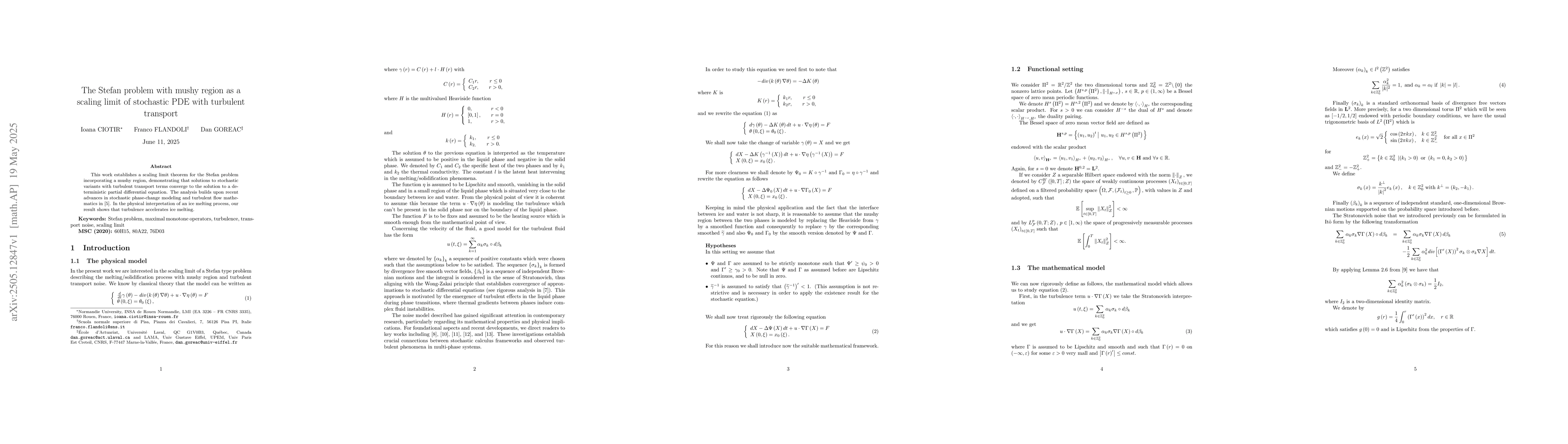 The development and proof of the scaling limit theorem connecting stochastic turbulent transport PDEs to deterministic Stefan problems with mushy regions.