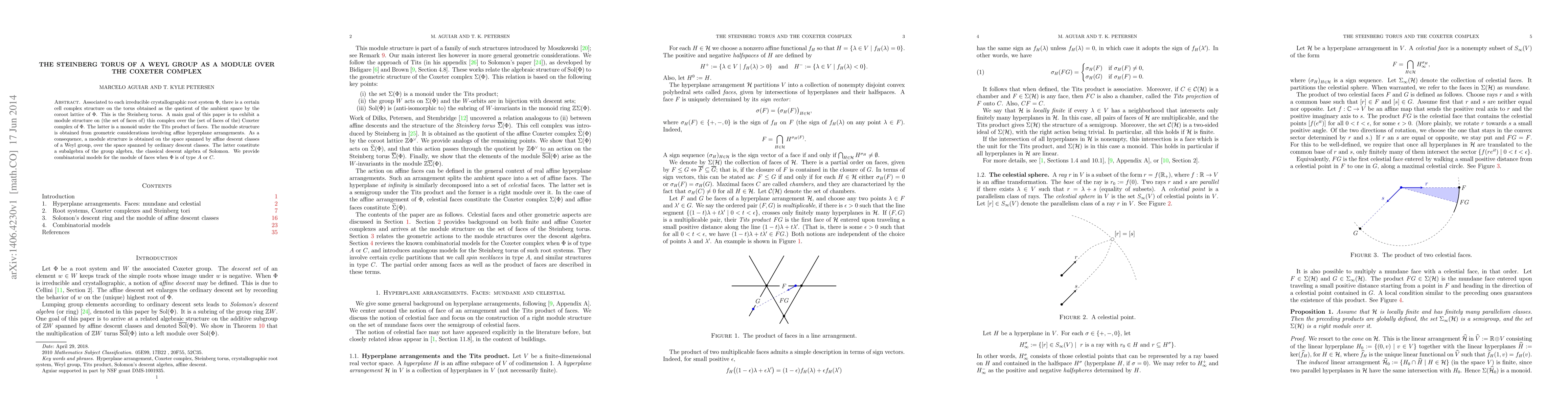 Associated to each irreducible crystallographic root system $\Phi$, there is a certain cell complex structure on the torus obtained as the quotient of the ambient space by the coroot lattice of $\Phi$. This is the Steinberg torus. A main goal of this paper is to exhibit a module structure on (the set of faces of) this complex over the (set of faces of the) Coxeter complex of $\Phi$. The latter is a monoid under the Tits product of faces. The module structure is obtained from geometric considerations involving affine hyperplane arrangements. As a consequence, a module structure is obtained on the space spanned by affine descent classes of a Weyl group, over the space spanned by ordinary descent classes. The latter constitute a subalgebra of the group algebra, the classical descent algebra of Solomon. We provide combinatorial models for the module of faces when $\Phi$ is of type $A$ or $C$.