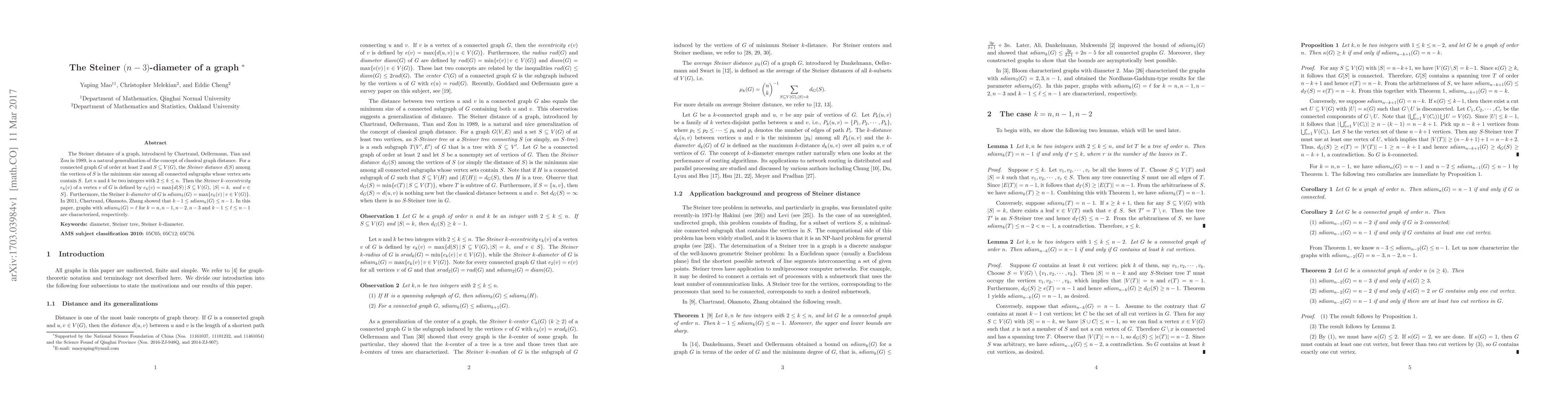 The Steiner distance of a graph, introduced by Chartrand, Oellermann, Tian and Zou in 1989, is a natural generalization of the concept of classical graph distance. For a connected graph $G$ of order at least $2$ and $S\subseteq V(G)$, the \emph{Steiner distance} $d(S)$ among the vertices of $S$ is the minimum size among all connected subgraphs whose vertex sets contain $S$. Let $n$ and $k$ be two integers with $2\leq k\leq n$. Then the \emph{Steiner $k$-eccentricity $e_k(v)$} of a vertex $v$ of $G$ is defined by $e_k(v)=\max \{d(S)\,|\,S\subseteq V(G), \ |S|=k, \ and \ v\in S \}$. Furthermore, the Steiner \emph{$k$-diameter} of $G$ is $sdiam_k(G)=\max \{e_k(v)\,|\, v\in V(G)\}$. In 2011, Chartrand, Okamoto, Zhang showed that $k-1\leq sdiam_k(G)\leq n-1$. In this paper, graphs with $sdiam_k(G)=\ell$ for $k=n,n-1,n-2,n-3$ and $k-1\leq \ell \leq n-1$ are characterized, respectively.
