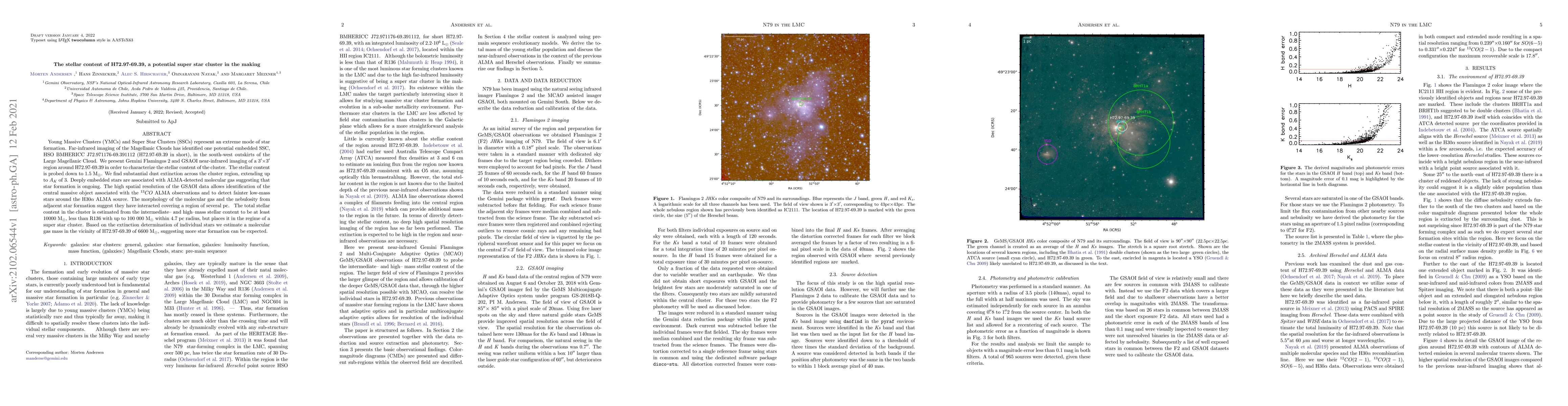 Young Massive Clusters (YMCs) and Super Star Clusters (SSCs) represent an extreme mode of star formation. Far-infrared imaging of the Magellanic Clouds has identified one potential embedded SSC, HSO BMHERICC J72.971176-69.391112 (HH in short), in the south-west outskirts of the Large Magellanic Cloud. We present Gemini Flamingos 2 and GSAOI near-infrared imaging of a 3'x3' region around HH in order to characterize the stellar content of the cluster. The stellar content is probed down to 1.5 Msun. We find substantial dust extinction across the cluster region, extending up to A_K of 3. Deeply embedded stars are associated with ALMA-detected molecular gas suggesting that star formation is ongoing. The high spatial resolution of the GSAOI data allows identification of the central massive object associated with the 13CO ALMA observations and to detect fainter low-mass stars around the H30alpha ALMA source. The morphology of the molecular gas and the nebulosity from adjacent star formation suggest they have interacted covering a region of several pc. The total stellar content in the cluster is estimated from the intermediate- and high-mass stellar content to be at least 10000 Msun, less than R136 with up to 100 000 Msun within 4.7 pc radius, but places it in the regime of a super star cluster. Based on the extinction determination of individual stars we estimate a molecular gas mass in the vicinity of HH of 6600 Msun, suggesting more star formation can be expected.