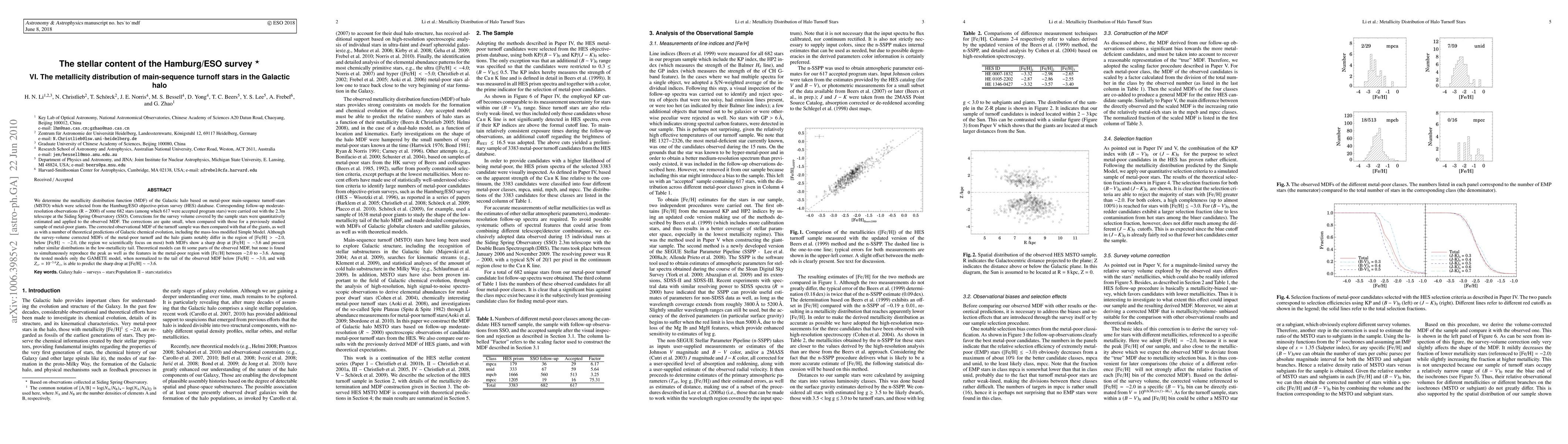 This paper investigates the metallicity distribution function (MDF) of metal-poor main-sequence turnoff stars in the Galactic halo, derived from the Hamburg/ESO survey. The study finds that while the MDFs of turnoff stars and metal-poor giants differ above [Fe/H] = -2.0, both show a sharp drop at [Fe/H] ~ -3.6 and similar low-metallicity distributions. Theoretical models struggle to simultaneously fit the peak and features in the metal-poor region.